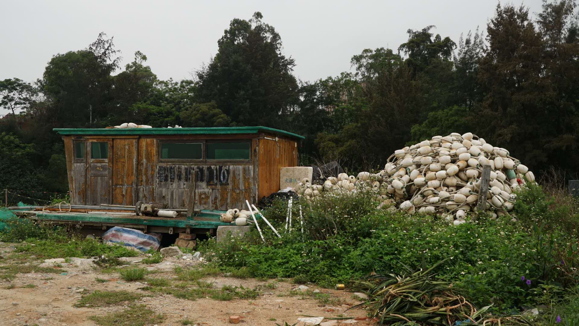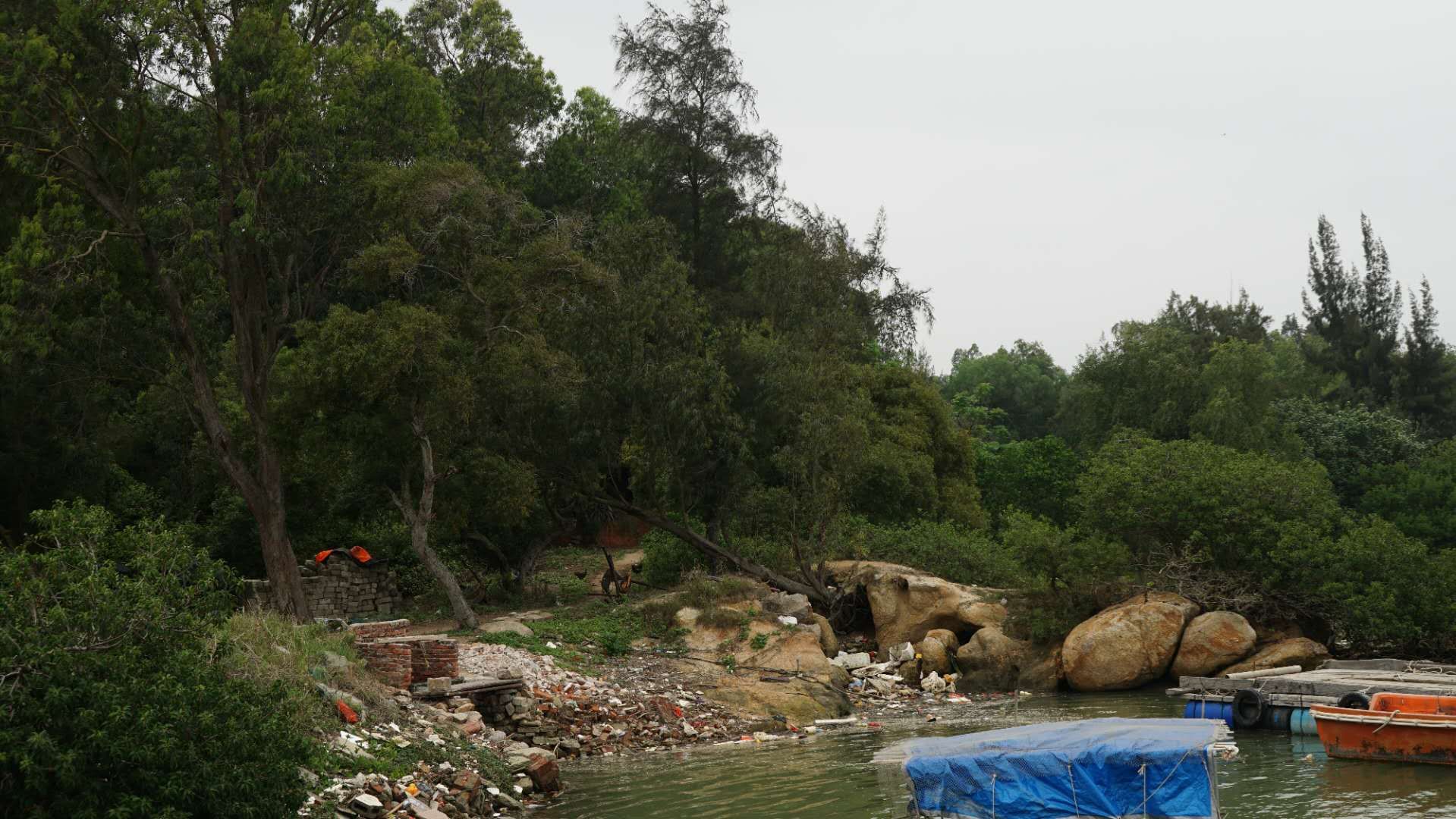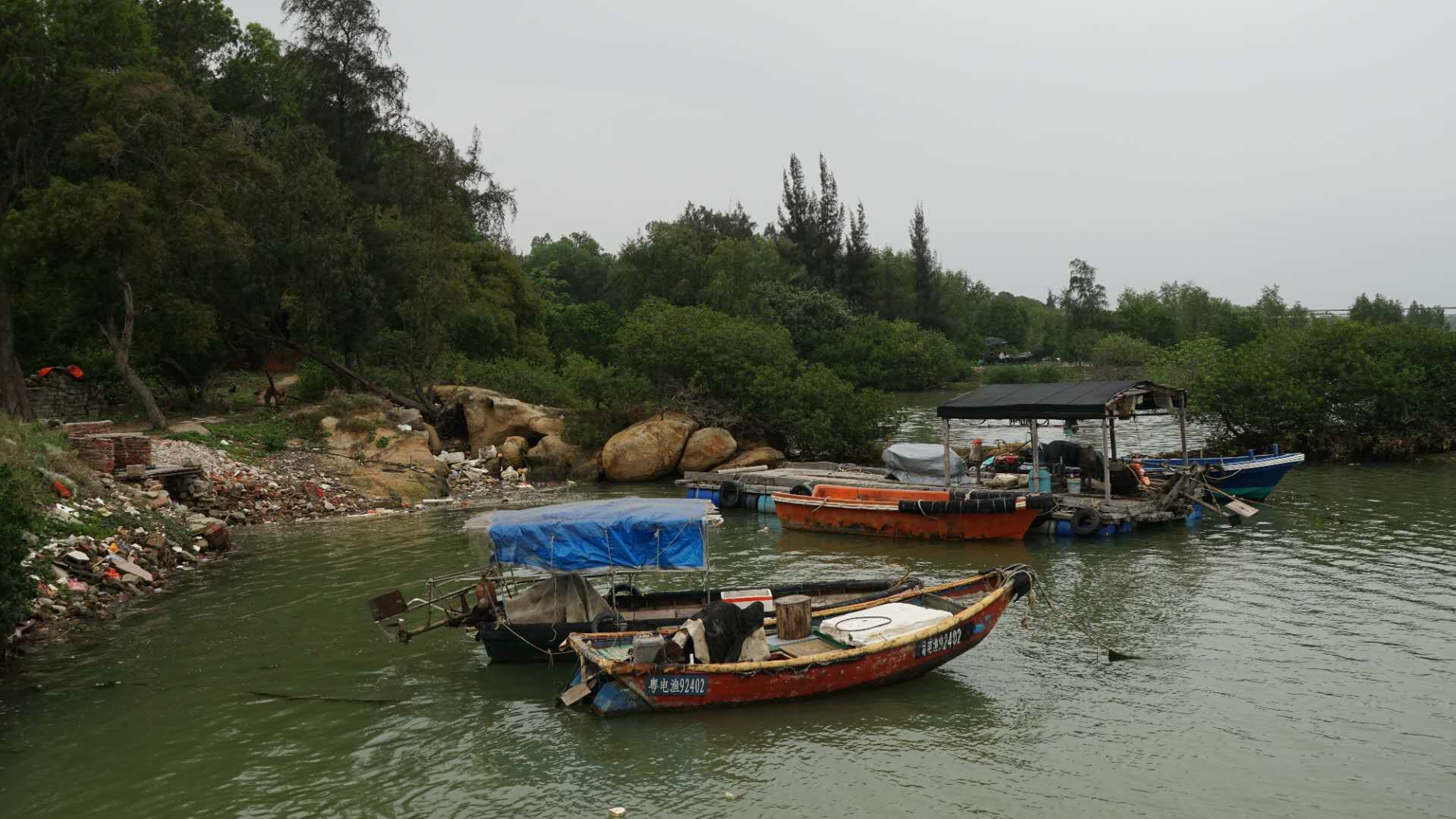 沿水闸旁小路入到破败的小渔码头,虽饱经沧桑,但又有一池春色: