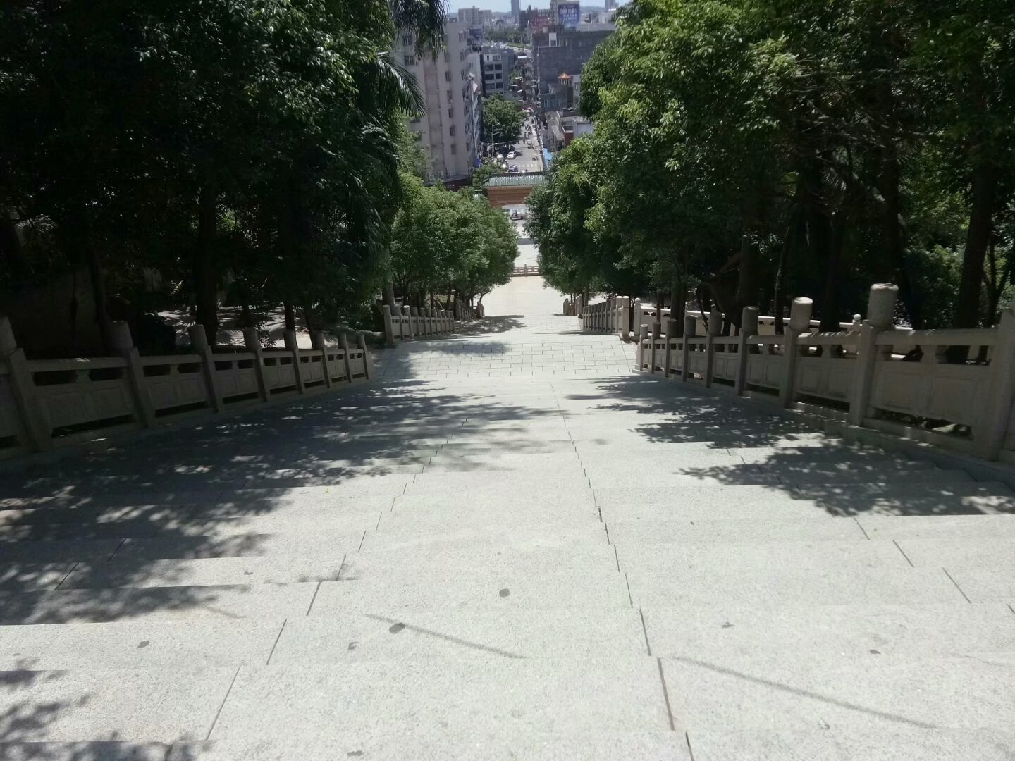 化州市区的宝山,这是作者从山顶往下拍摄的照片,下底是繁华的中山路,目测陡度有50度角。