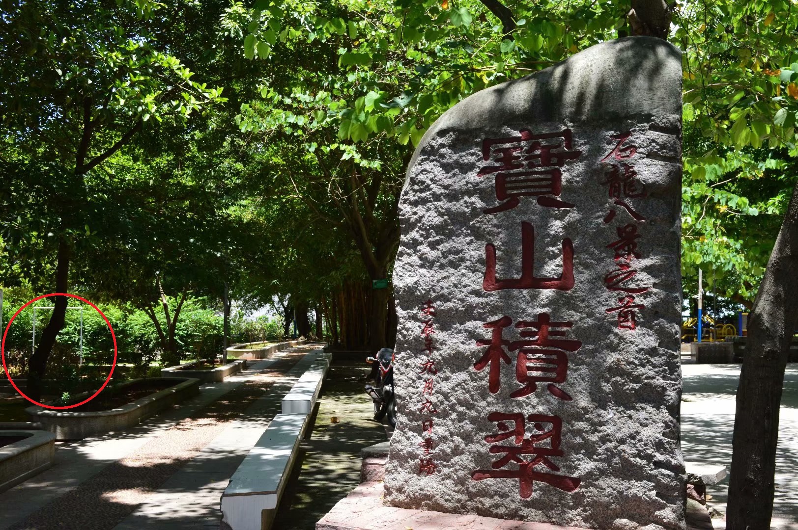 化州宝山公园。红圈处曾埋葬着4个死于1968年化州武斗的青年。
