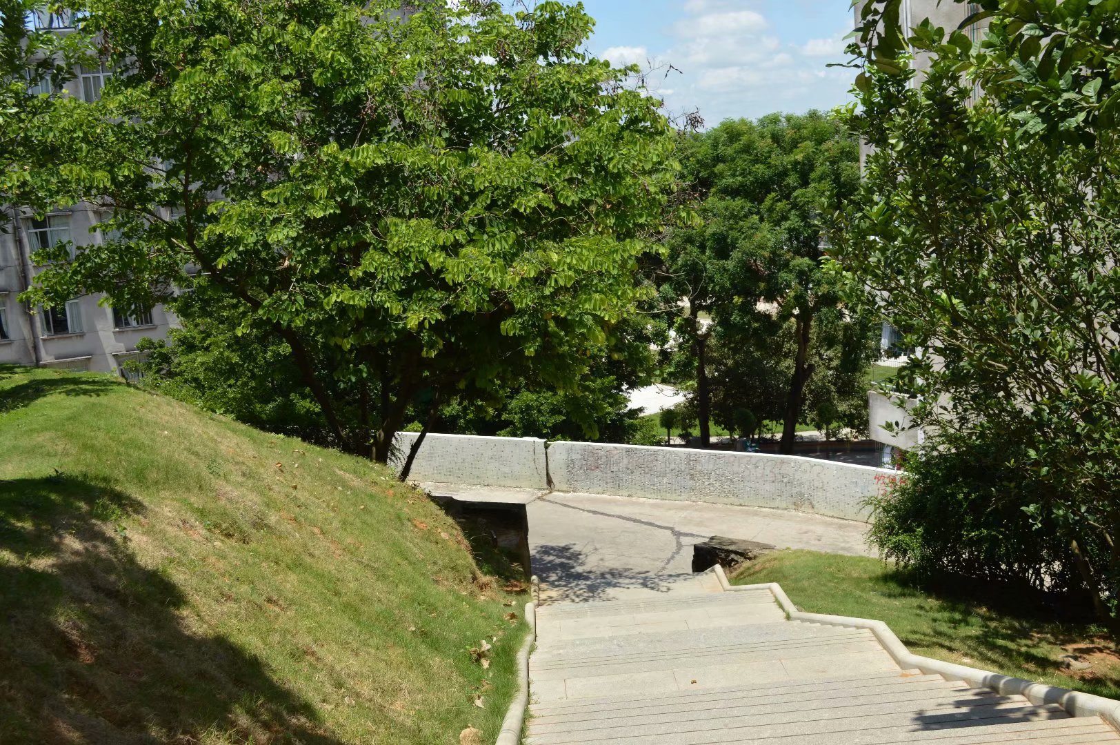 宝山公园西面,虽然经过建设,坡度比原来低了,但从这里看,也是够陡的。