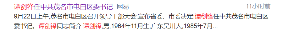 茂名本土公众号有关谭剑锋任电白书记的新闻打开都显示该内容已被发布者删除,网易的也被删了,太诡异了。