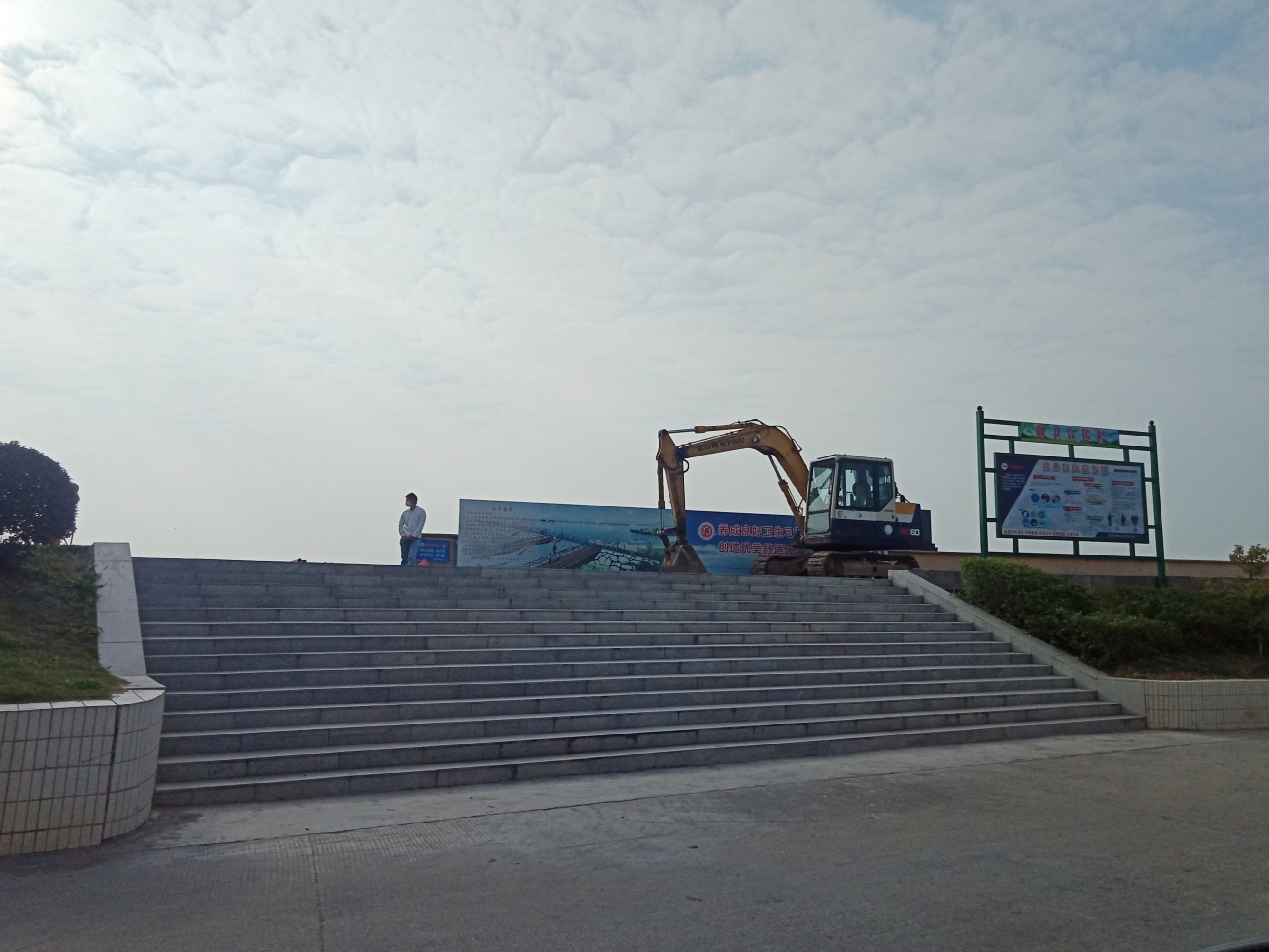 海堤那个观鹭阁旁竖立着台钩机在做咪咪?