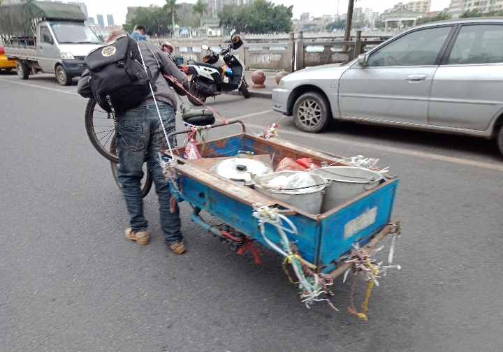 S sBsB 大学一年级 注册 2019-09-29 消息 734 反馈评分 54 点数 11 2020-12-17 #16 看图,像一边车轮掉出来,并挂在三轮车头,而另一边的车轮也没气了,连轮胎外表都突出来,而三轮车链也掉出来,看样,只是靠一条绳索用肩膀扛着拖行着一堆废铁?