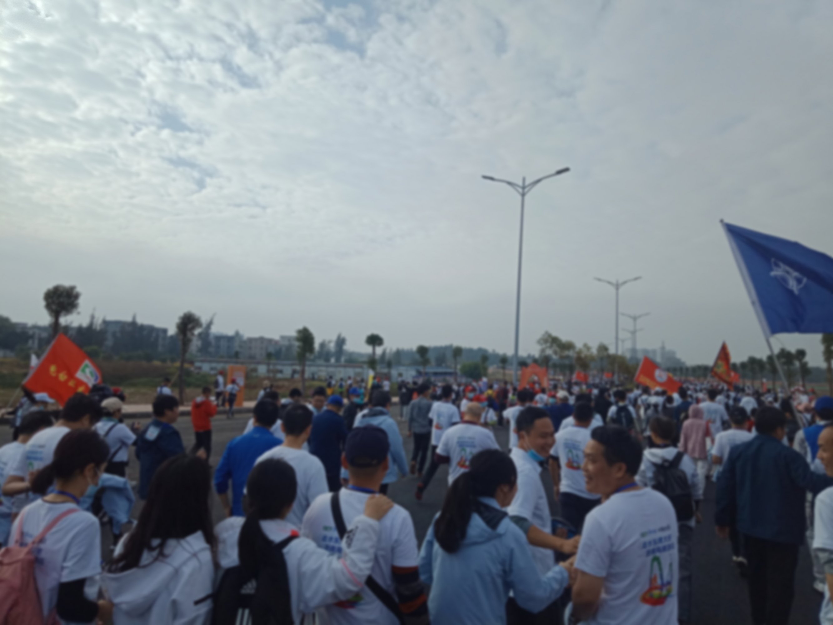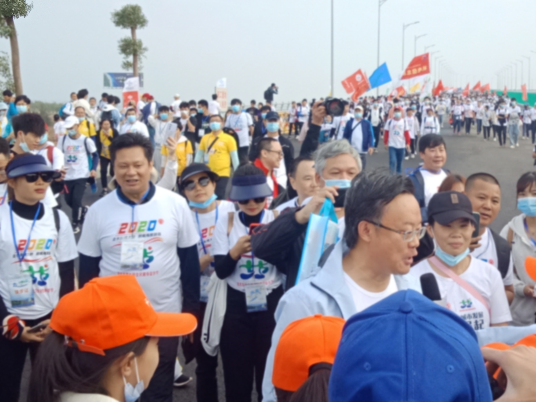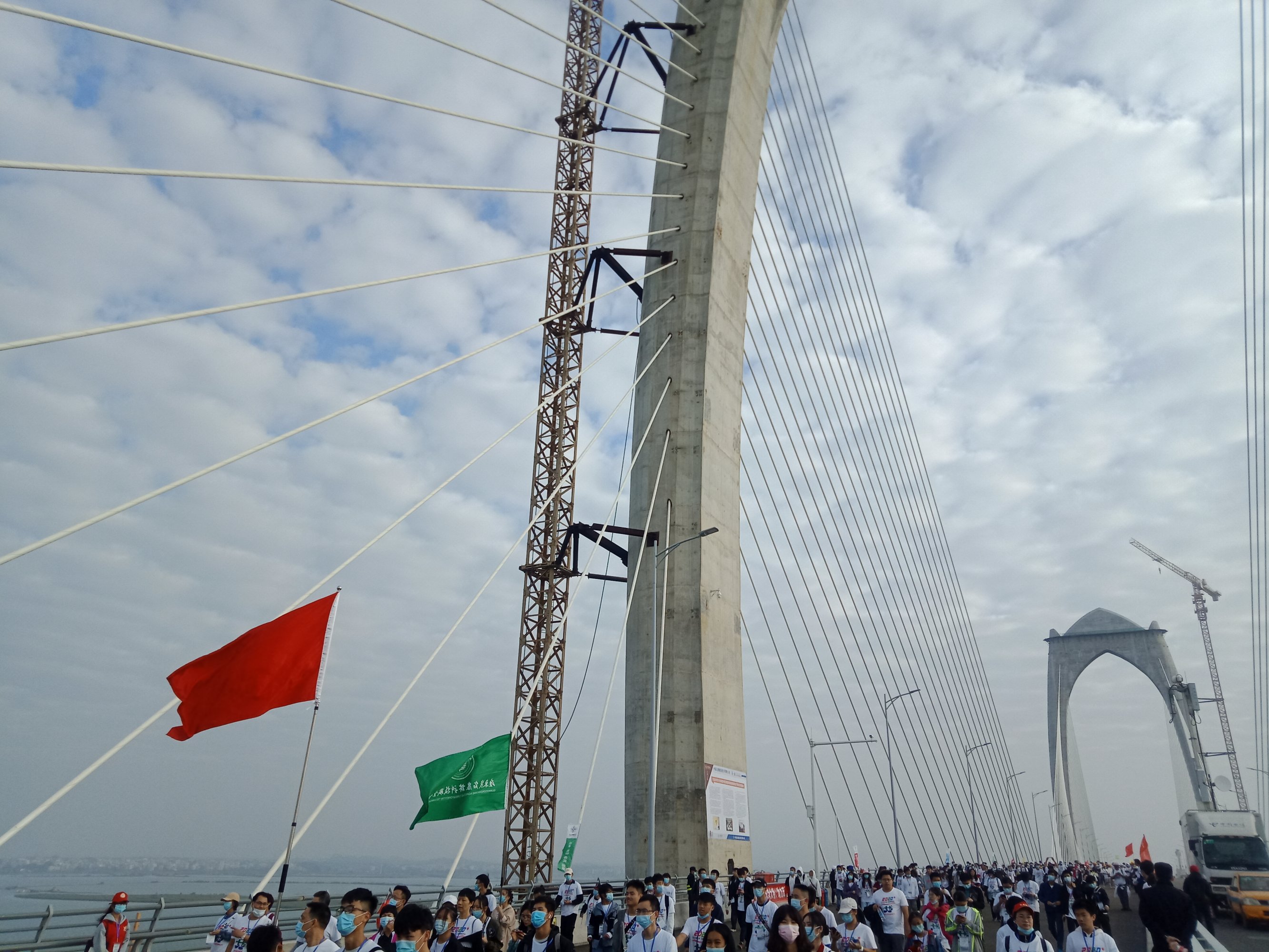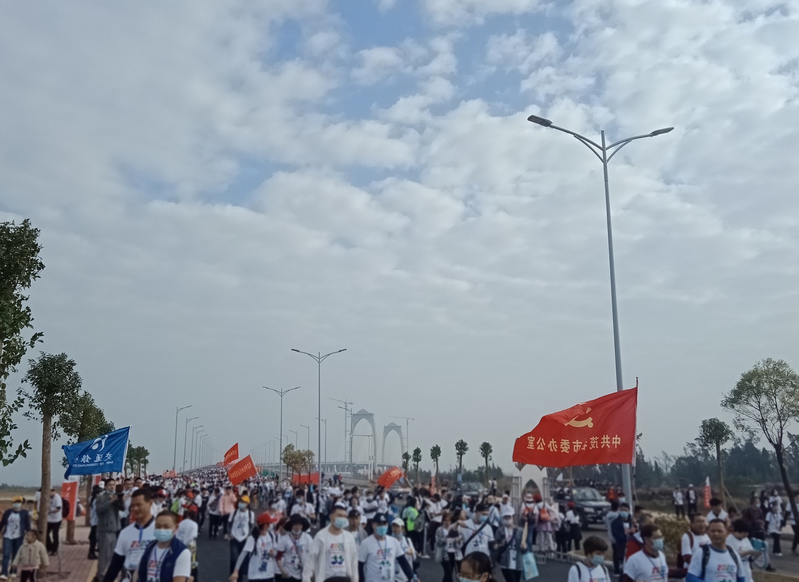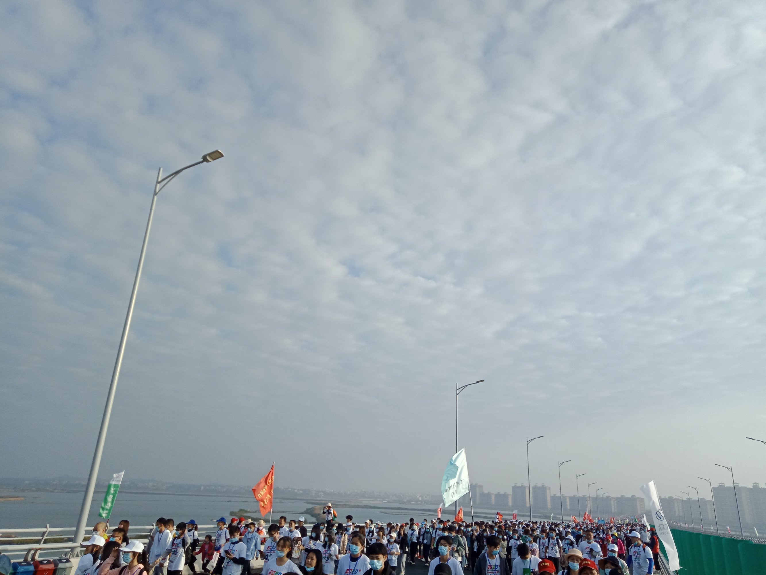 我早上将近七点钟就到了,我想看下有多少人参与,与看下人景,特别水东湾大桥上的人景,从起点一直走到可看见水东湾大桥上坡的位置,一眼望去已都是人影,而那个启动仪式好像是8点十几分才开始?为了一睹已占先偷步的水东湾大桥上的人景,我也没有看启动仪式,经过那启动仪式平台时,只看到还在演练