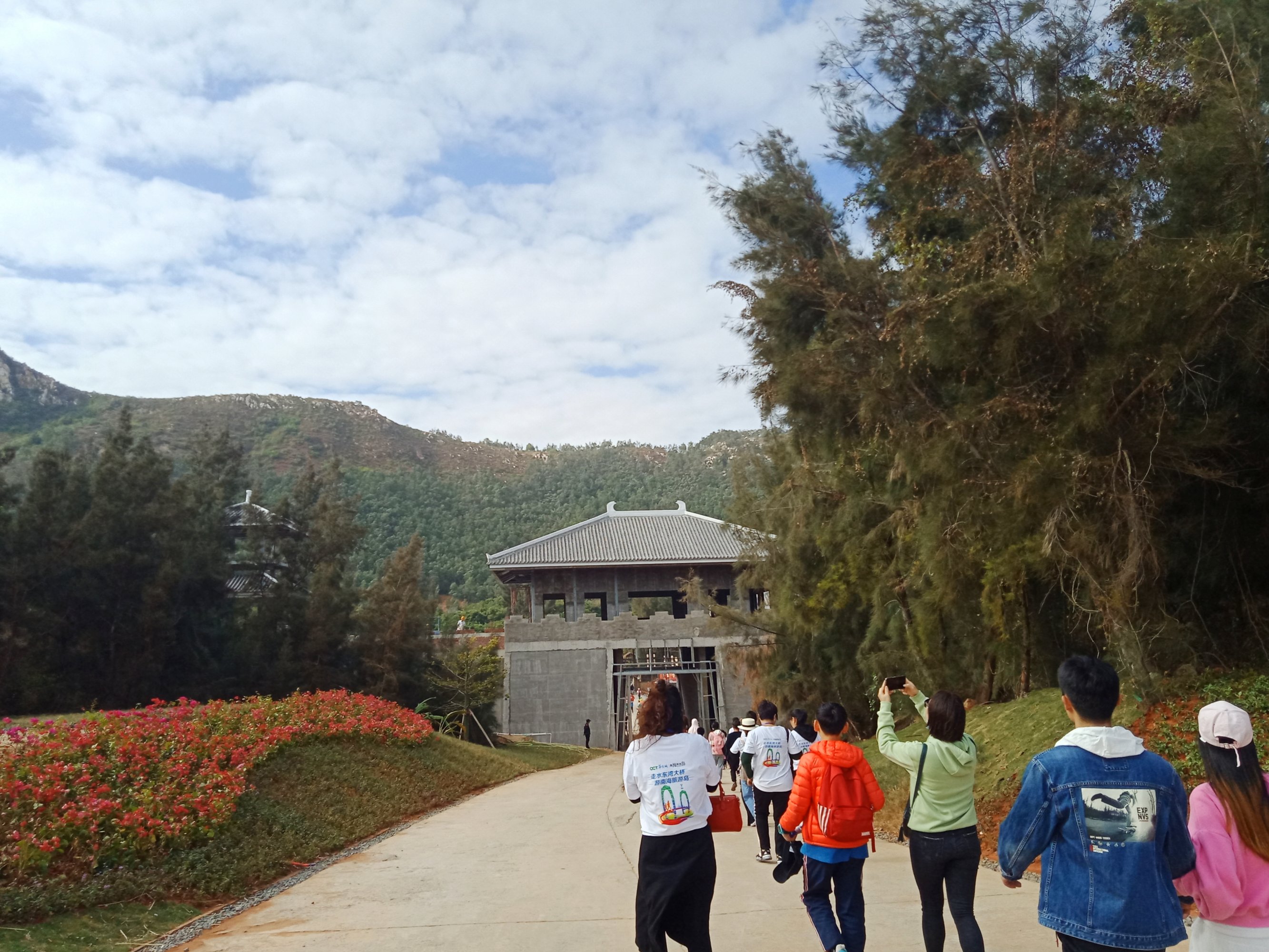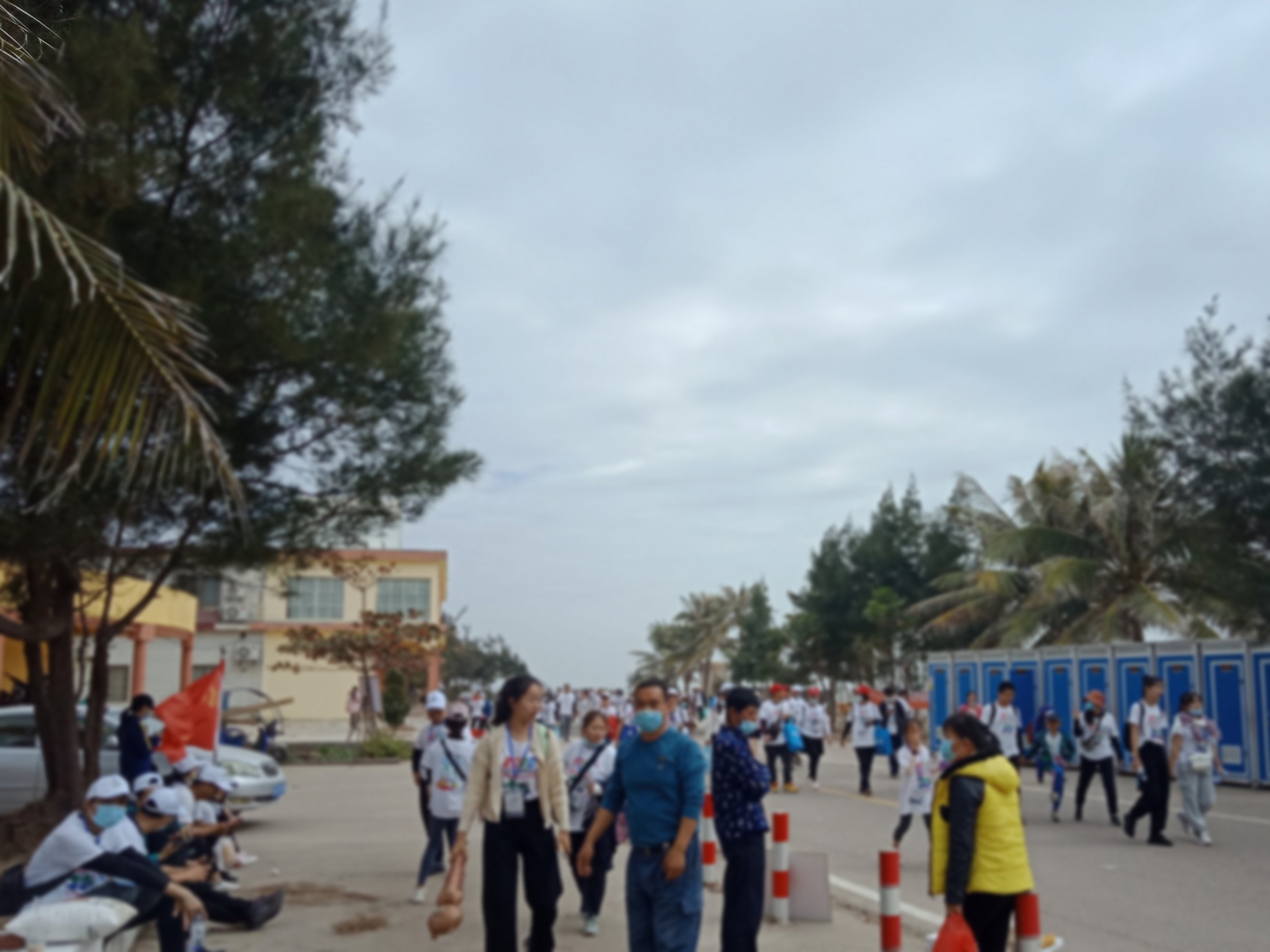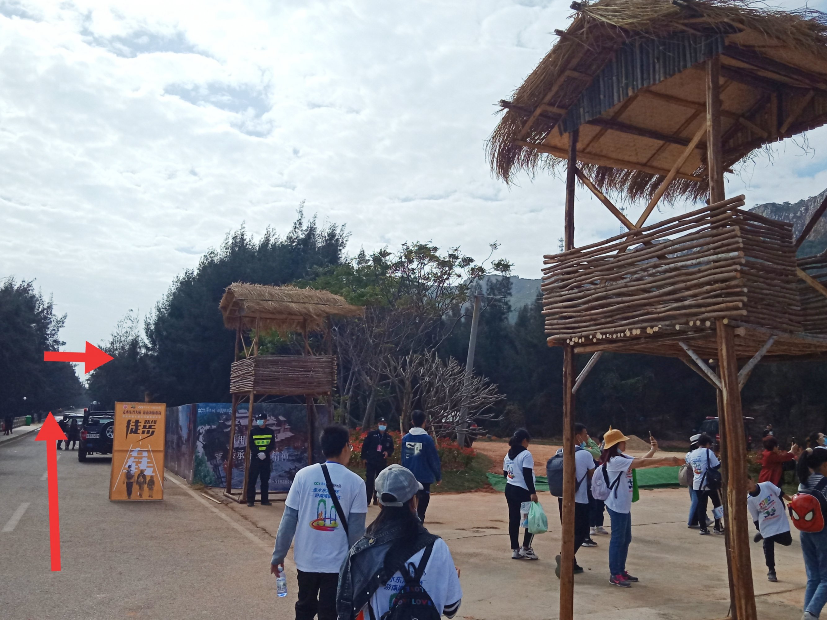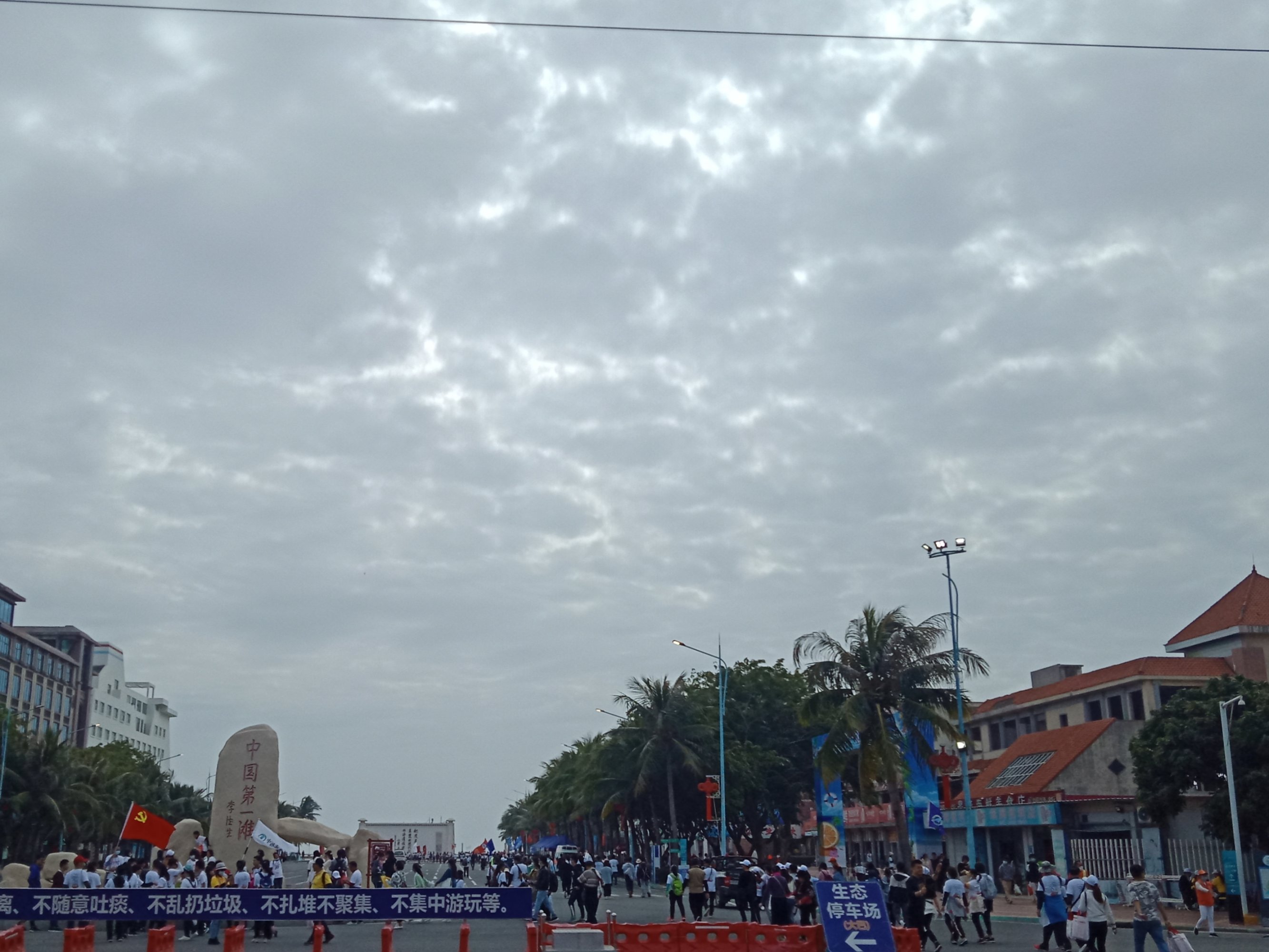我已经是较晚的时间才徒赶到一滩,我有些徒走没有按照他们指定的路线走,但我没完全走进入,也没走顺防海堤边走去晏镜岭方向,而是自己选择些抄近路的途径,在外面的侧边走直径,走向阳虾苗场再走虎头山大转盘,直入海防大道,想快点赶到摄影基地,但在虎头山转盘只能出不能入,就走侧边再直入防海堤,只见些零散的人群方队,在那有些店,进去想买些东西,顺借下充电器,可是没有,也不敢多拍了,这牌写着一公里其实不止
