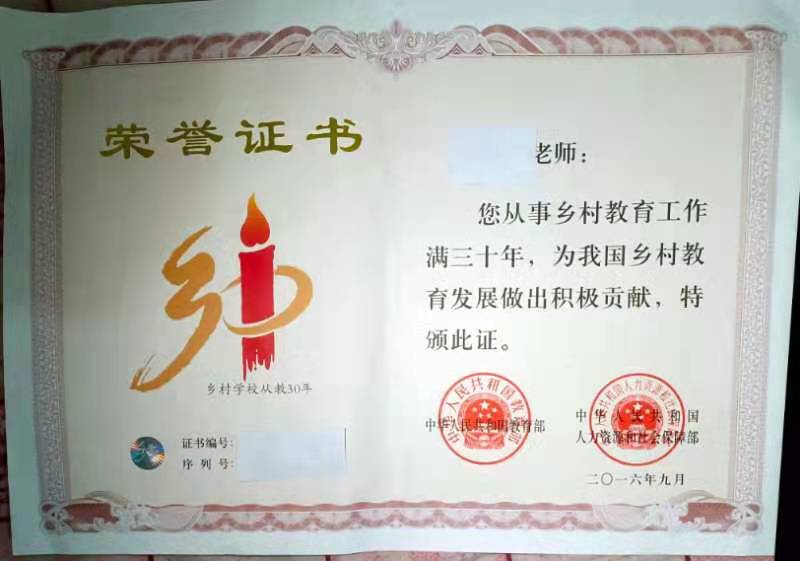 长 长家村陈 小学一年级 注册 2019-04-24 消息 108 反馈评分 8 点数 1 2021-04-10 #4 2016年获得 “中华人民共和国教育部、中华人民共和国人力资源和社会保障部” 颁发乡村教师荣誉证书教育工作者,到现在很多年了。 最后编辑: 2021-04-10