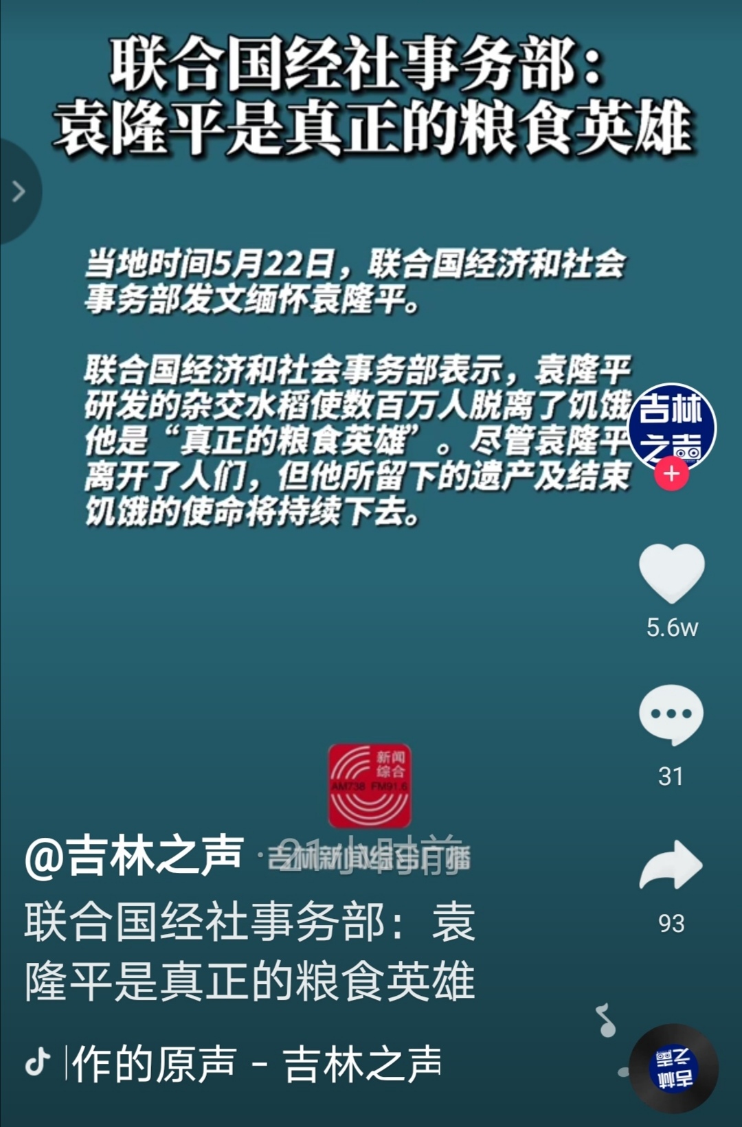 小石龟 荣誉主席 注册 2020-09-30 消息 8,366 反馈评分 324 点数 191 年龄 50 性别 男 2021-05-23 #18 绿城风景 说: 浏览附件350011 浏览附件350012 点击展开... 袁老留给我们最大的遗产远远不止一个杂交水稻,而是,一个终生无党派科学家该有的气节,誓死捍卫的科学信仰!