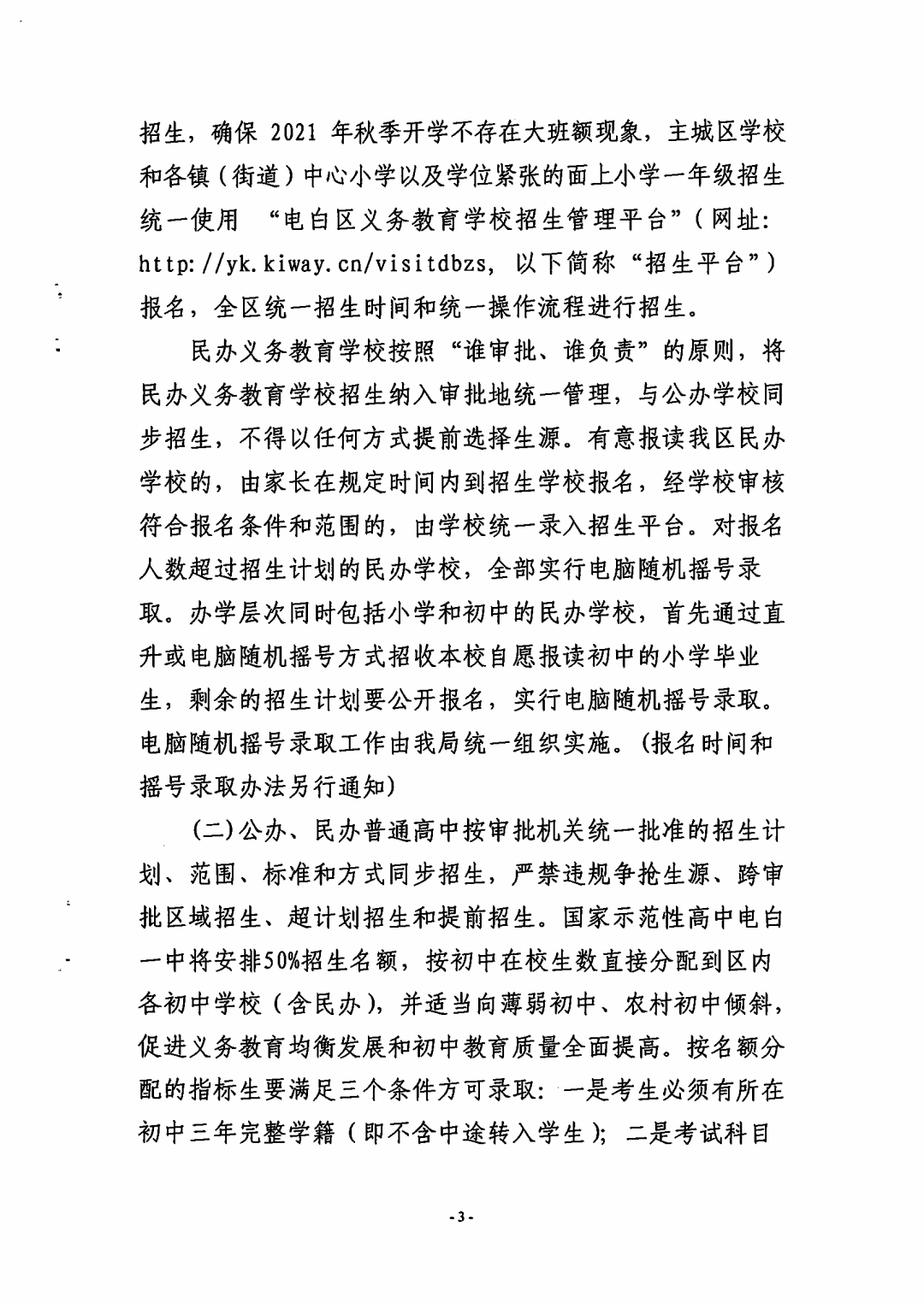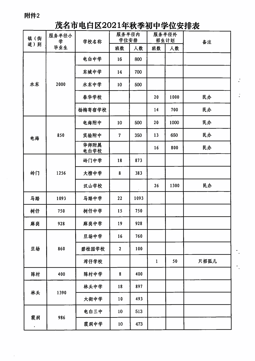 爆料 关于做好茂名市电白区2021年秋季中小学招生工作的通知