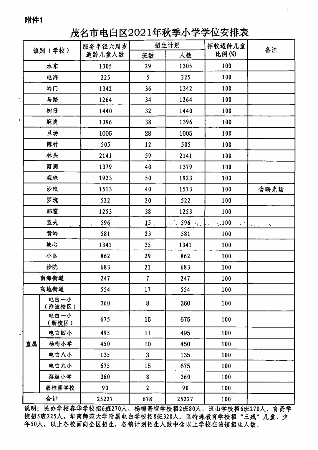关于做好茂名市电白区2021年秋季中小学招生工作的通知