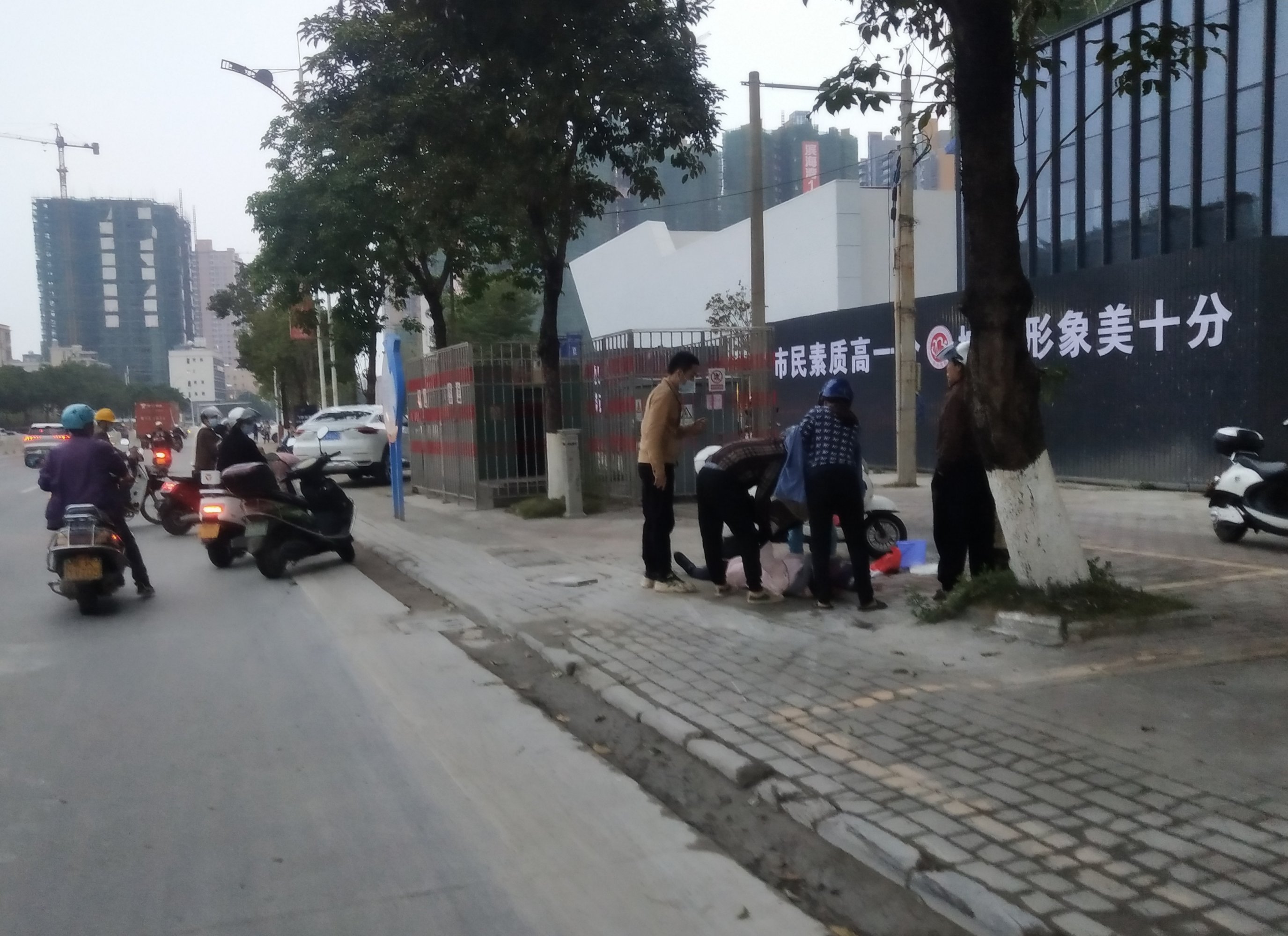 可能这只是一件很微小的事,在电白大地也会时常发生?如果大家有见到,诂计也会停下来,守望相助,伸出援手! 我也不大清楚前因?可能是一个女的搭着孩子不慎趺倒在地??我遇见时也有过去看下有什么可以怎样的,但已见有好多好多路人、驾摩托的、、众多的路人,停下过来帮忙了,像有帮忙按红中按手心、、、打电话叫救护车,帮其打电话联系她家人、、当时见这女的已是不昏迷状态,地上有血迹、、幸亏见戴有头盔没脱离头部,而旁边应该是她孩子在不停拉住手,呼叫、、、而旁助者也有帮忙呼喊、、