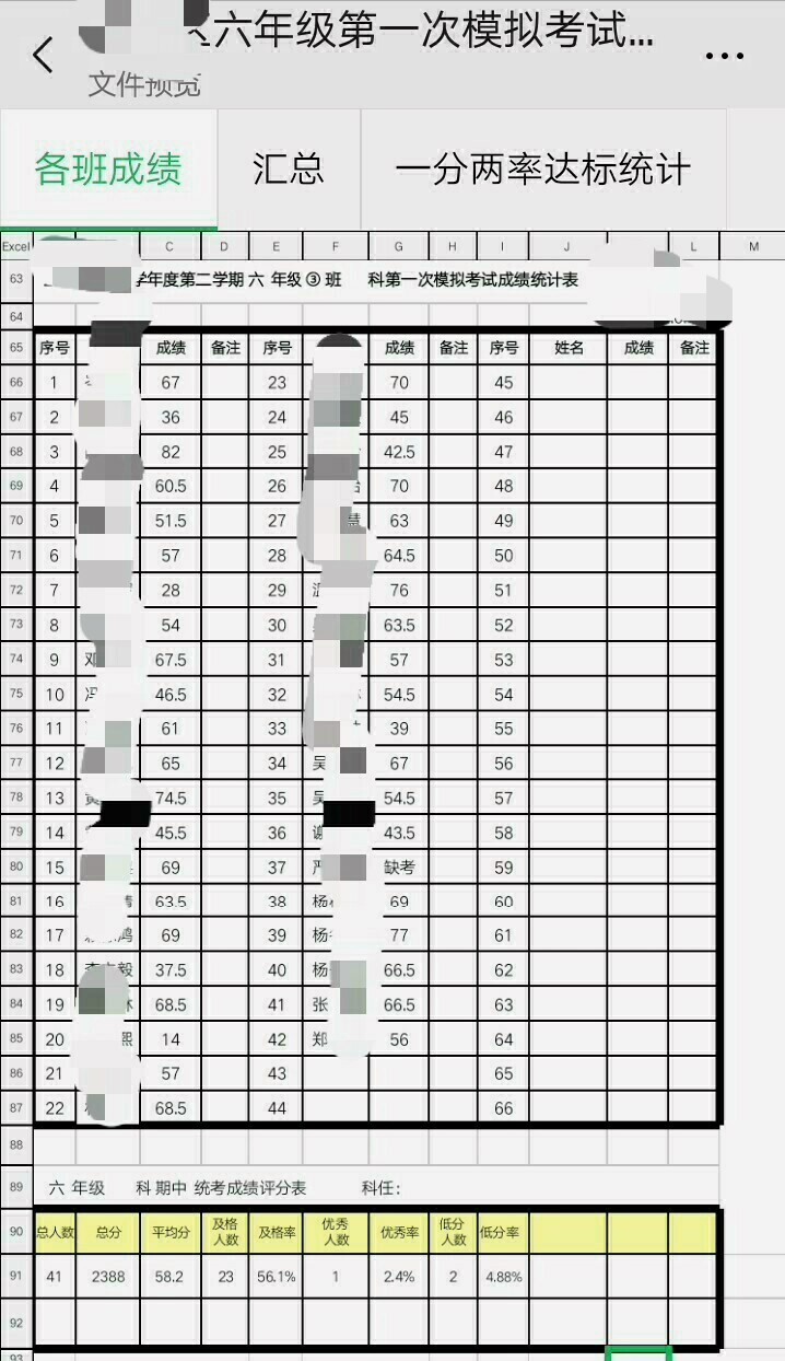 校长,你居心何在?安排是什么老师教书?下面上传是小学六年级某一个班,为何模拟考试成绩这么差?参加考试40人,不及格18人,及格22人除1人是82分外,剩下都是六、七十分,是谁任教?任教老师有学历证书吗?有教师资格证、职称证吗?或是临聘过来得过且过度日子代课老师或民师?你我也有孩子读书呀?