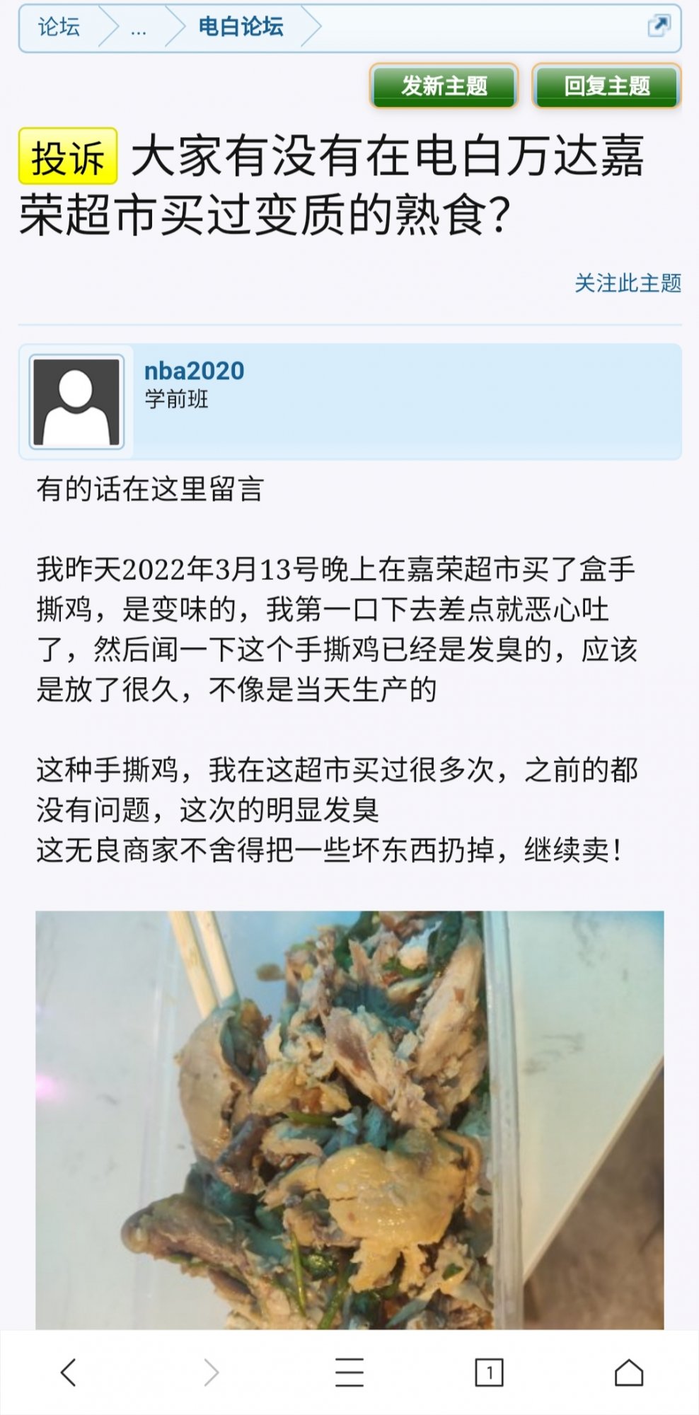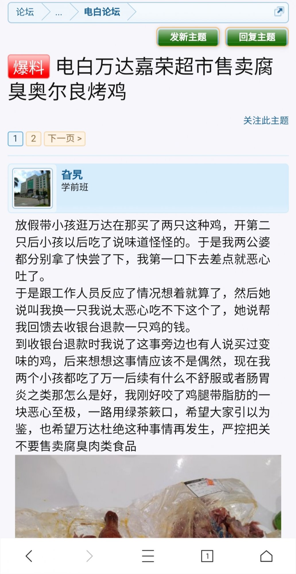 贴里大概意思是说,举报内容中提到电白现在发展旅游城市,要是外地朋友来吃到变质鸡会影响电白形象,12315回访的人说这个说法上升到好高政治高度,吓得取消投诉了,12315实名举报怕被盖政治帽子。