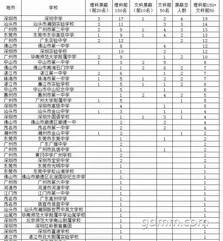 2022年广东高考屏蔽物理前10名,历史前5名。湛江市特尖学生情况:廉实前100名物理2人(其中屏蔽1人),历史前20名1人。湛江一中前100名物理3人,历史前20名1人。廉实3人中,有2个往届生。湛江一中清北录取预计6-8人。近两天,网传各校屏蔽人数合计30人是去年数据。湛江一中物理类尖子生,第57名、81名、97名,约130名.历史第20名
