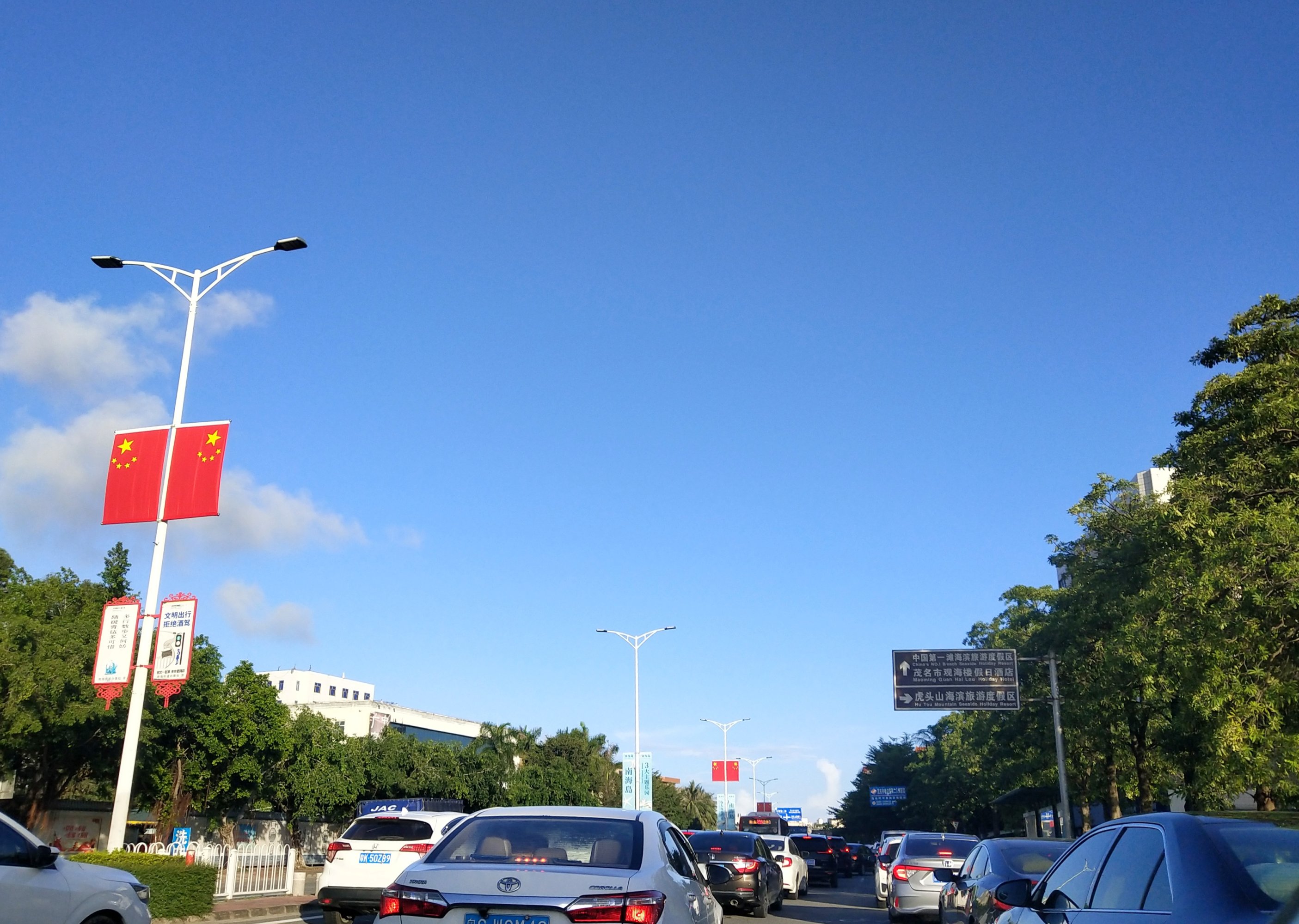 走出海滩,又走回海防大道,见车还在拥塞...