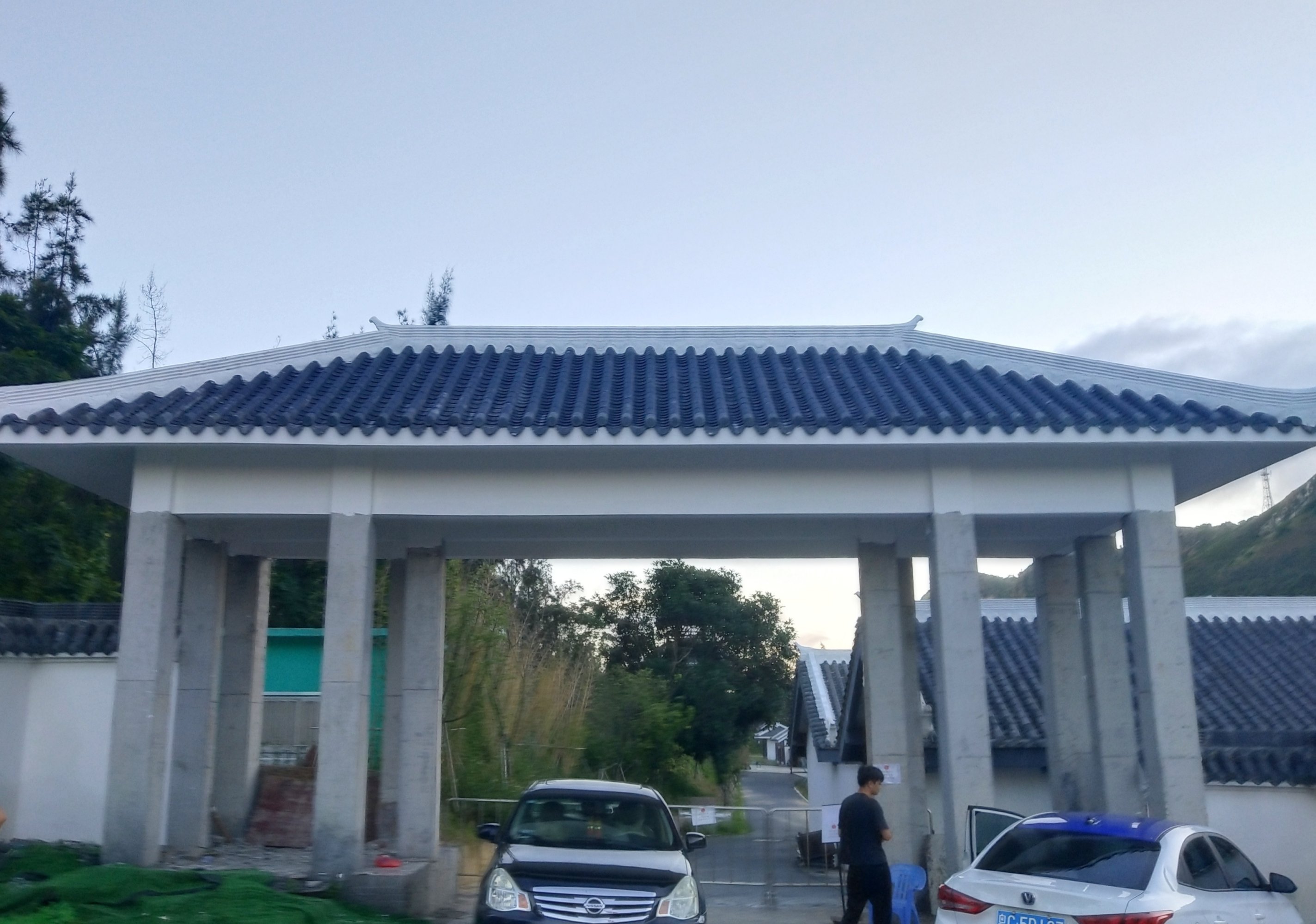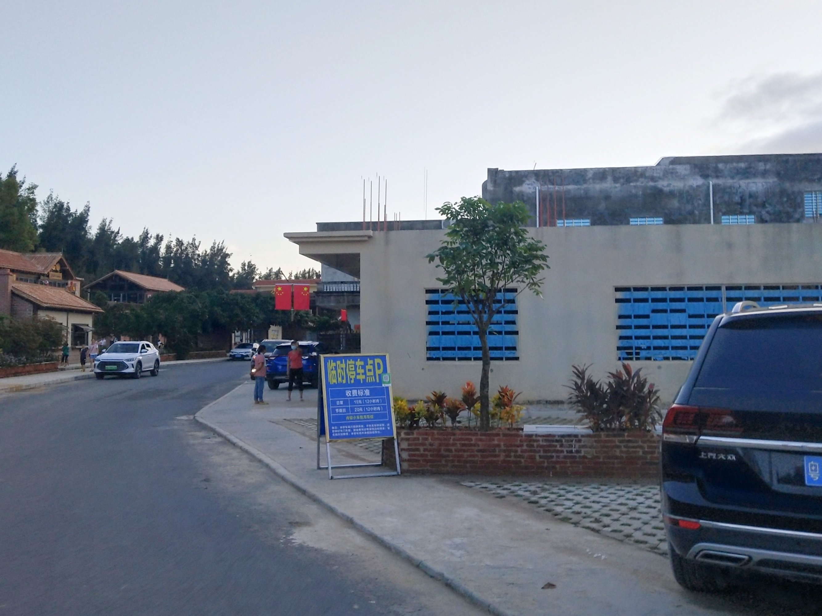 走到这,前面有个指示牌写着晏镜停车场,我先驾摩上去看下,再转回来,这停车场外围有车辆识别智能扫码进出门栏,不知是哪个公司或谁谁开启的?收费如何不知道?好像也有人将车停放在较远点的村居门前或不大阻塞交通的地方?至于也要收不收点点费,不知道?...但对于我的电摩的问题不大...