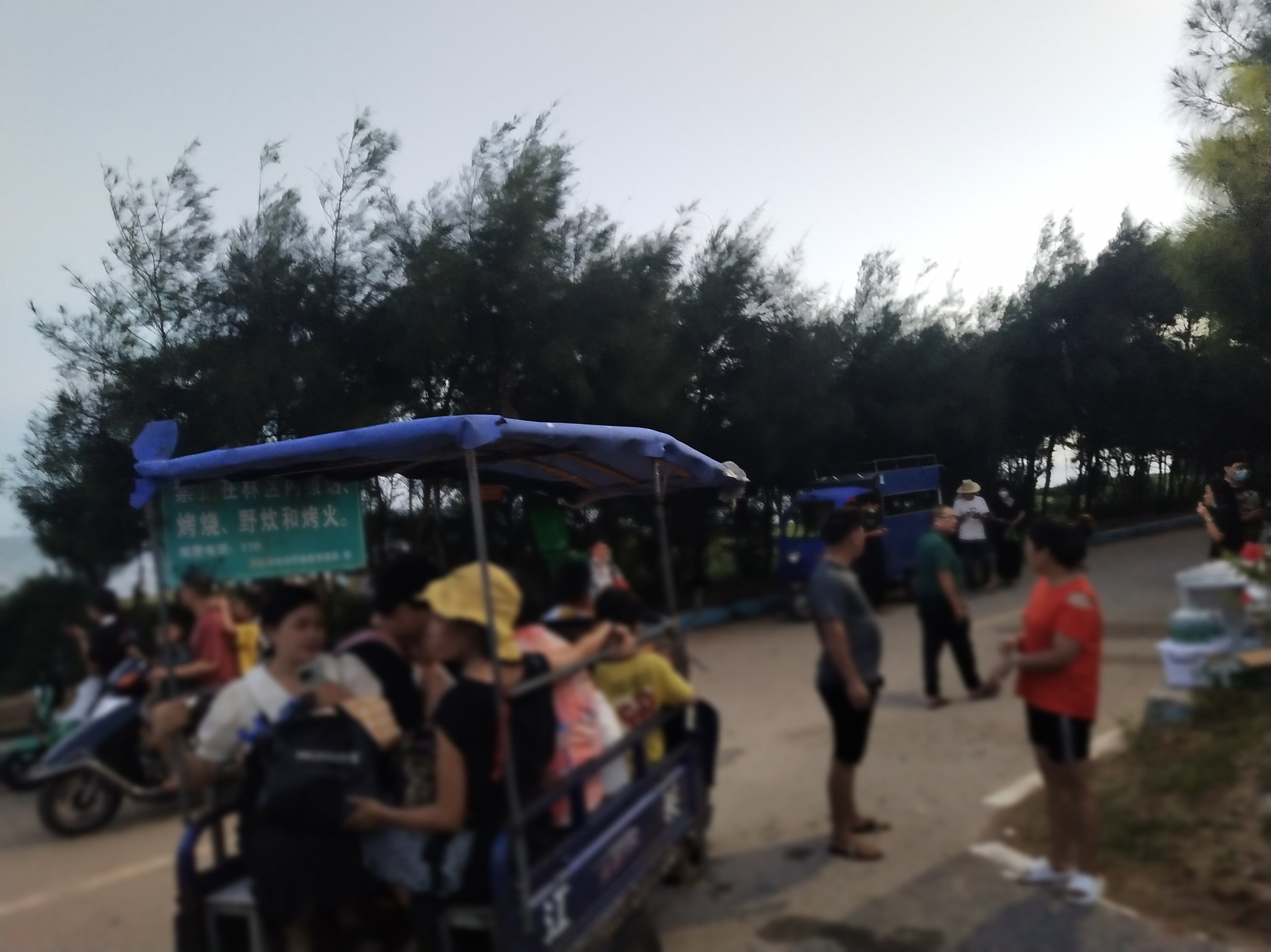好像当地人买三角电鸡电摩摩托搭些游人顺海边绿道去童子湾晏镜步行栈道,两边还有摆卖...等...上落收多少,没问,不知道??