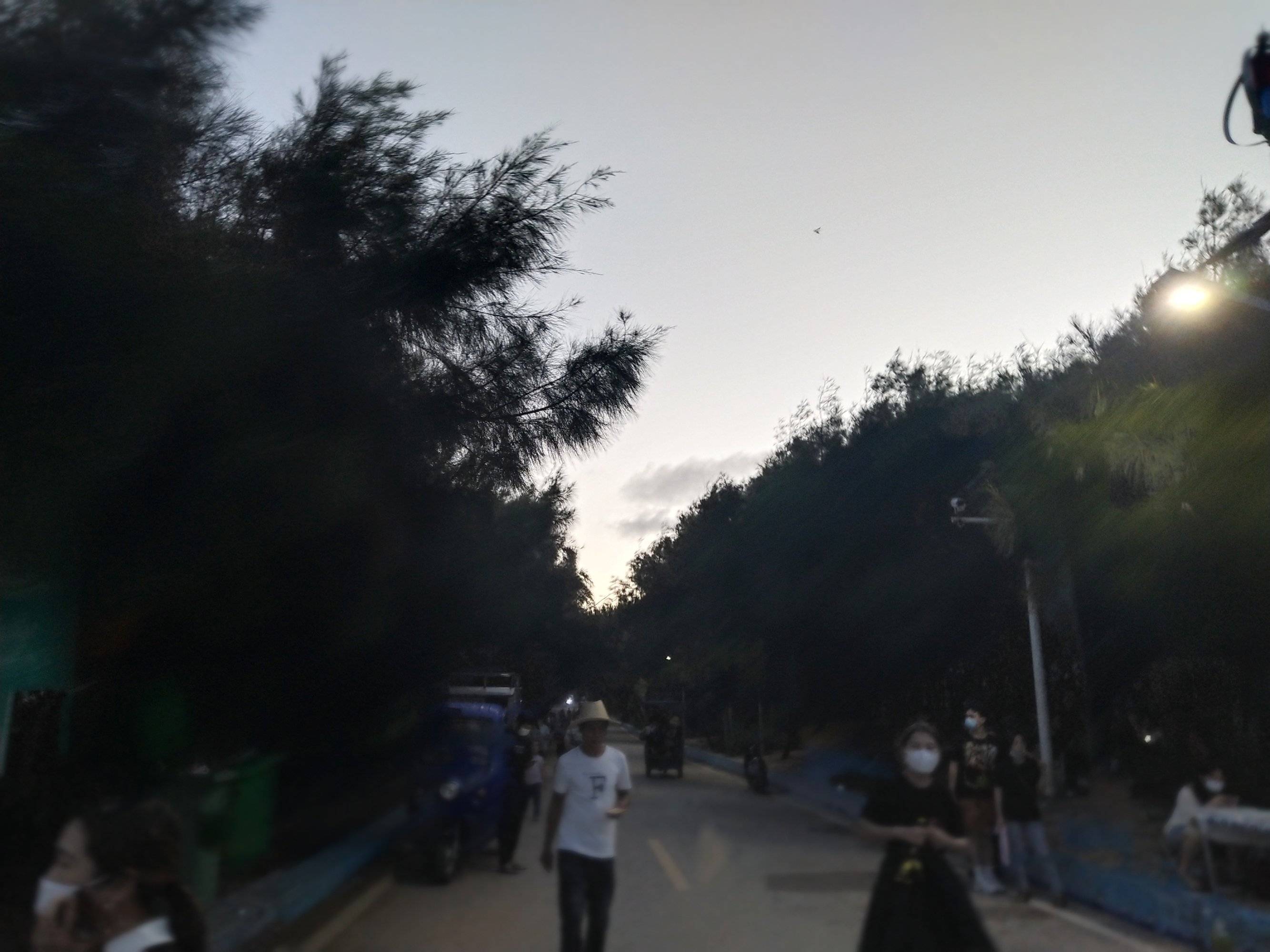 后走出路边,准备找电鸡回去,发现上面停车场的位置车来车往人来人往,好奇也就向右走上去看看...这边走虎头山的海防大道,感觉车塞得动弹,不过节假日哪都一样...除非会走便道...不过也无所谓,塞塞更健康...