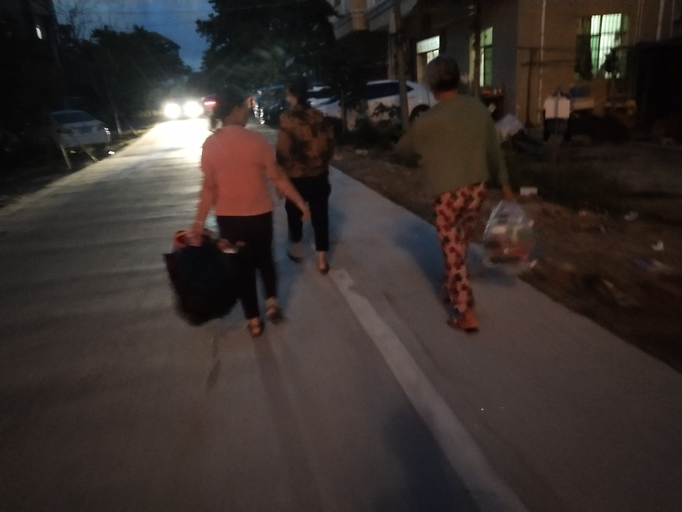 因为我大栝有点知道方位,所以我从桥头那边走罗围了墨胶那边去,原本穿过歌美海那边去驾过宴镜那边,不过我想看下进港大道车多不多,所以就走到下里红绿灯再向右转绿海居委...哇一路好多车...