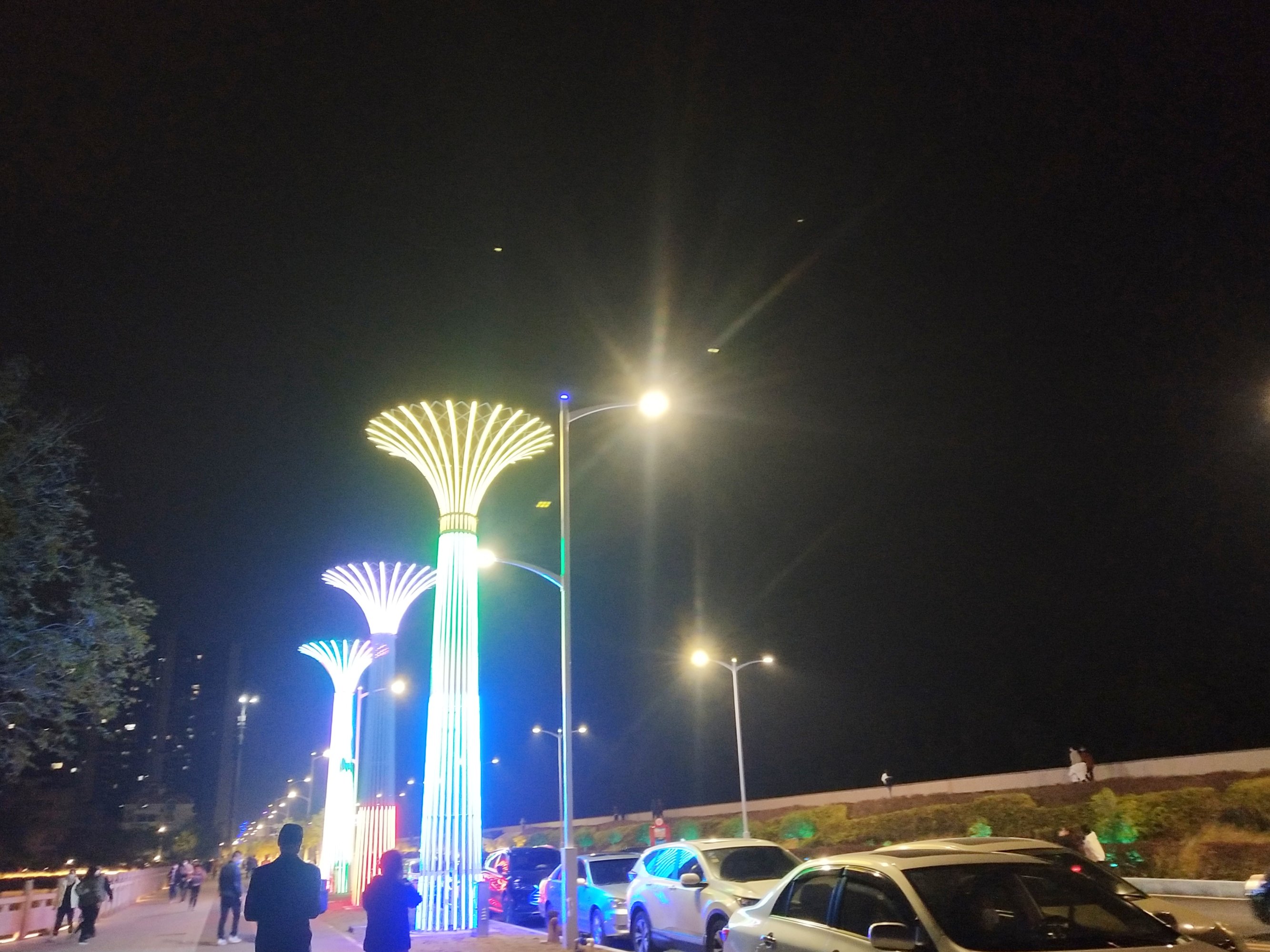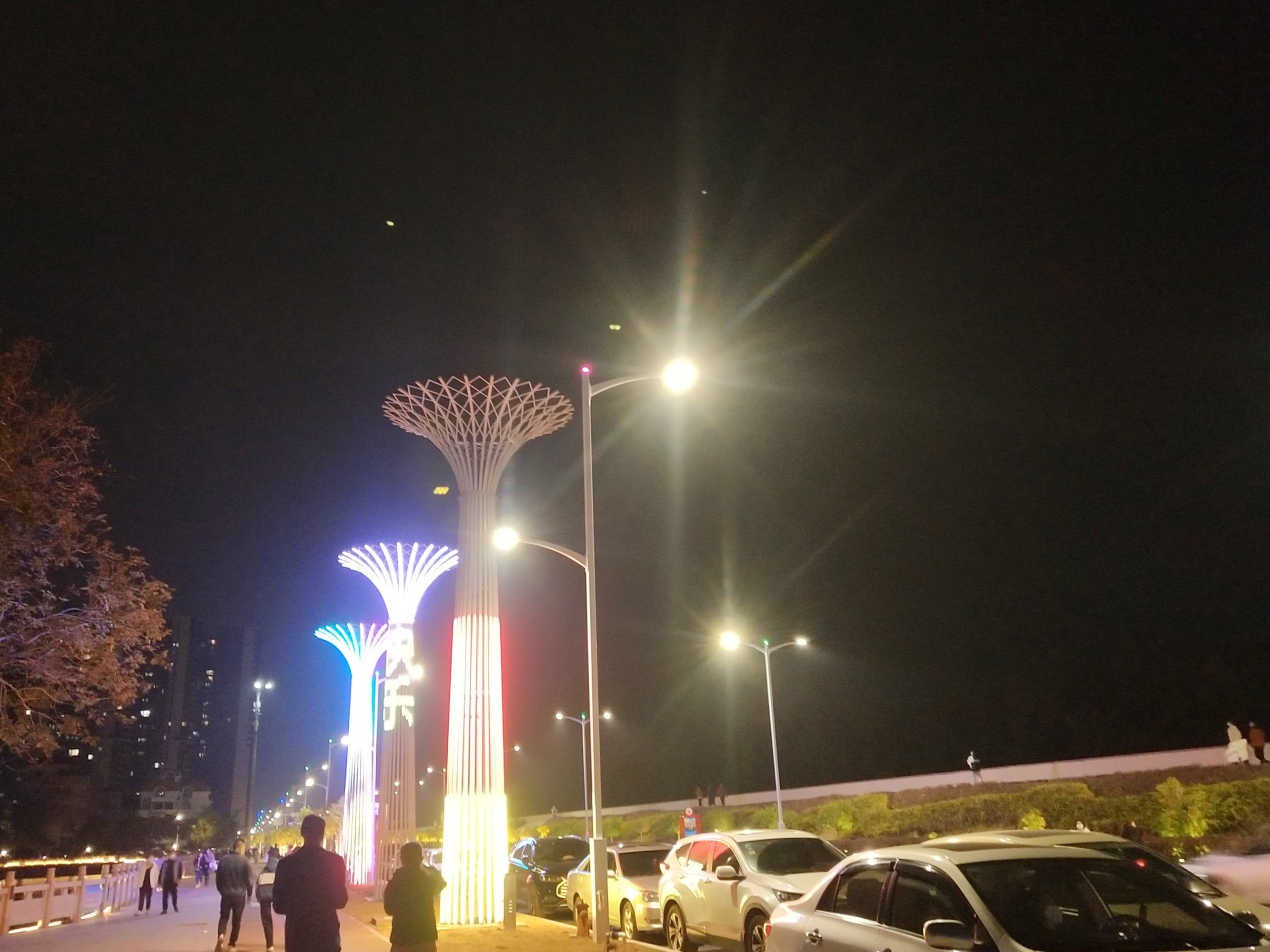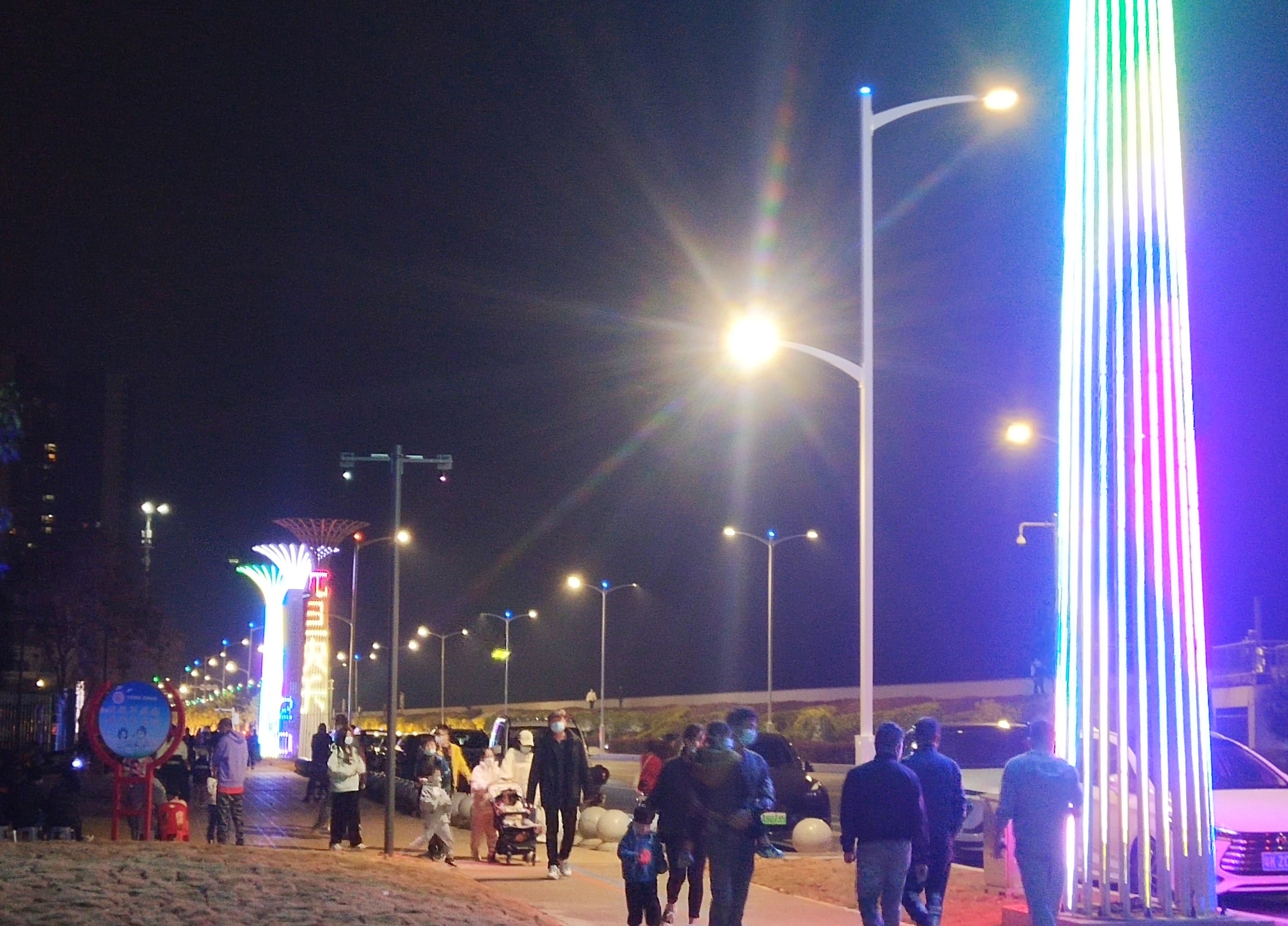 人还算挺多的,昨晚还是星期一,车流车影人流人影才是最靓丽的一道风景线,目测大人小孩都基本有配戴囗罩,而且晚上目测海堤路车来车往,而一侧的路边停满了汽车,停车是个问题?不过晚上临时停靠在路边嘛,因时因地制宜,也无坊吧! 您的浏览器无法显示此视频。
