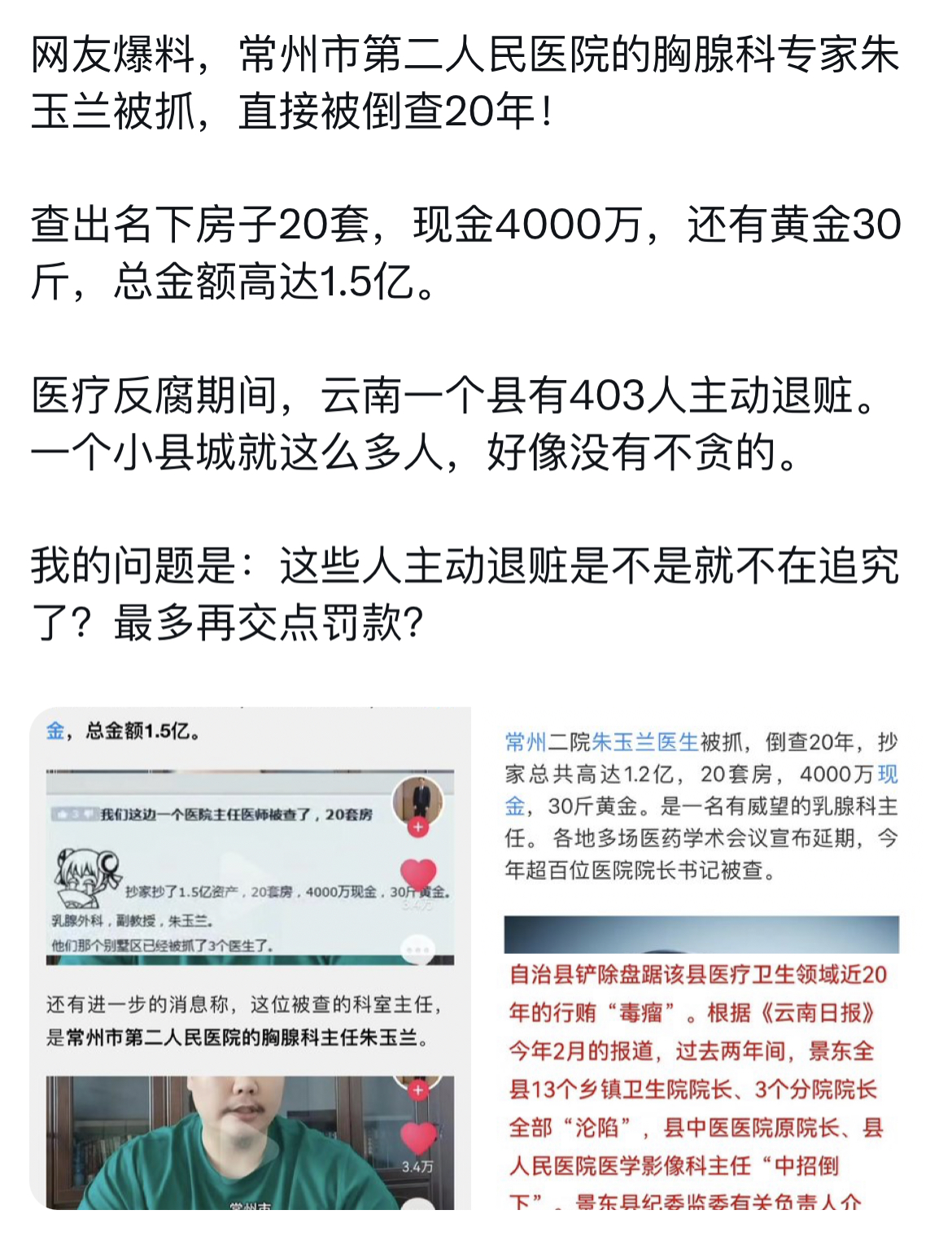 中国医疗系统的腐败是中国人民心中的痛,为了迎合资本的利益,有关部门一直未能痛下决心来解决。三年疫情,中国共产党看到了公办医院医疗系统的巨大作用和看到了全国人民的凝聚力,近来中国南海,台海风云涌动,中国人民解放军已经在公开备战,人民医院将是战时重要的后勤保障,中国军队永远不会忘记朝鲜战争,因为国内无良资本家在军队医疗物资保障方面的腐败对军队的损害所造成的重大人员和物资损失。现在解决医疗系统腐败已是逼在眉目,解决全国人民看病贵看病难的问题,相信这次医疗系统反腐败将是一场硬仗,不但有全国人民的支持,也有医疗系统的医疗工作者的支持和拥护,让那些医疗系统的蛀虫瑟瑟发抖。