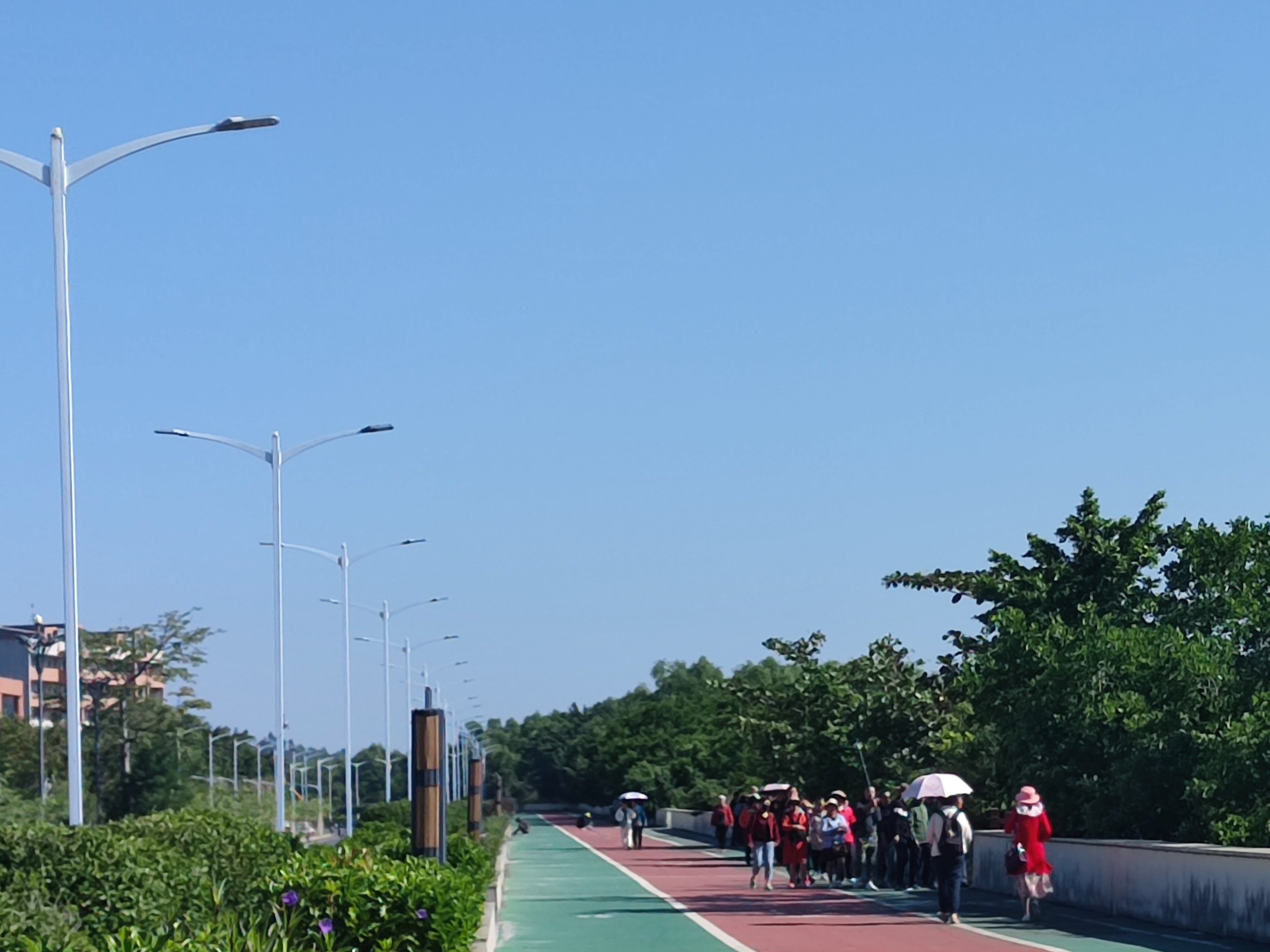 或许在这个位置下来,再走过海堤路的人行班马线,上到步行绿道,向着栈道方向漫步前进…