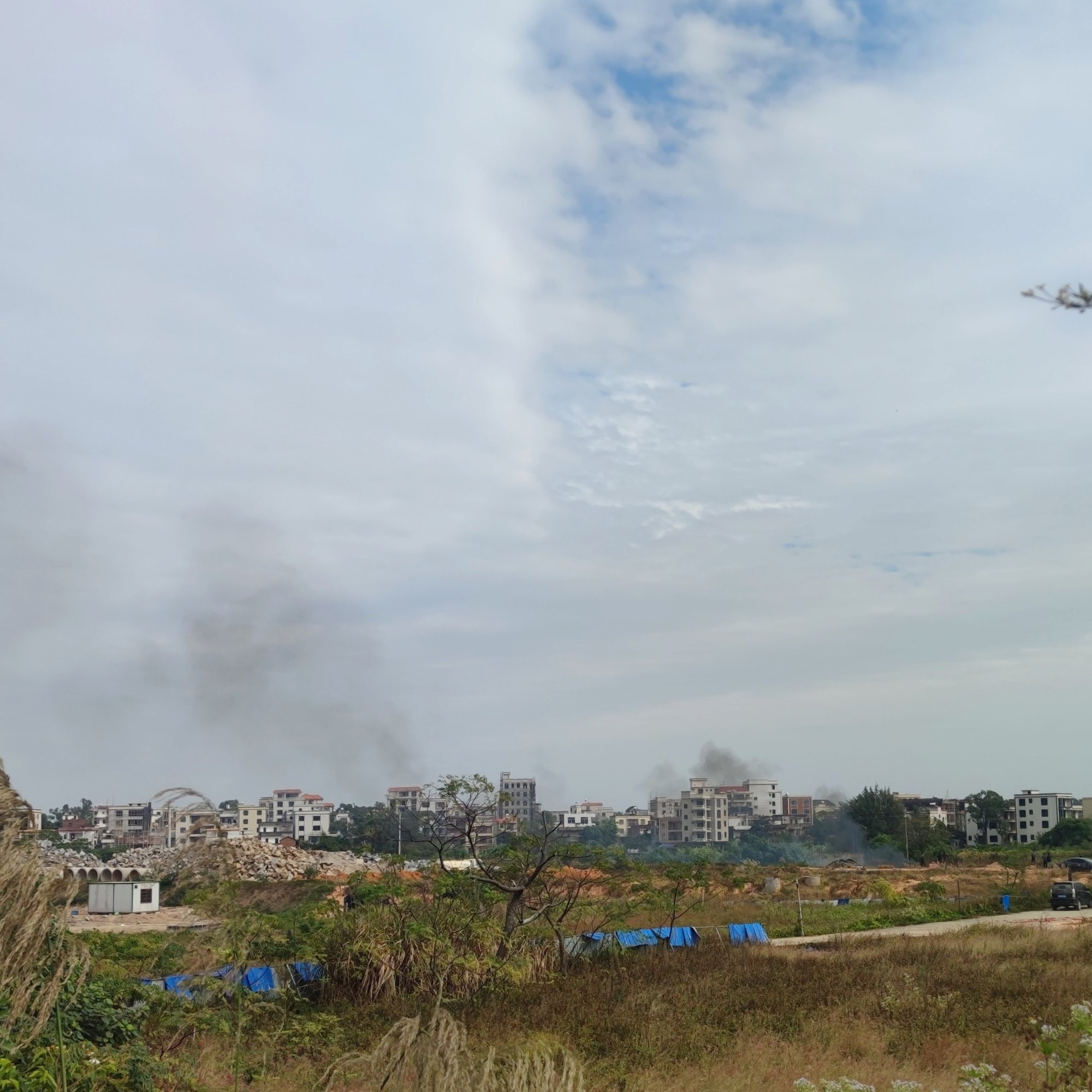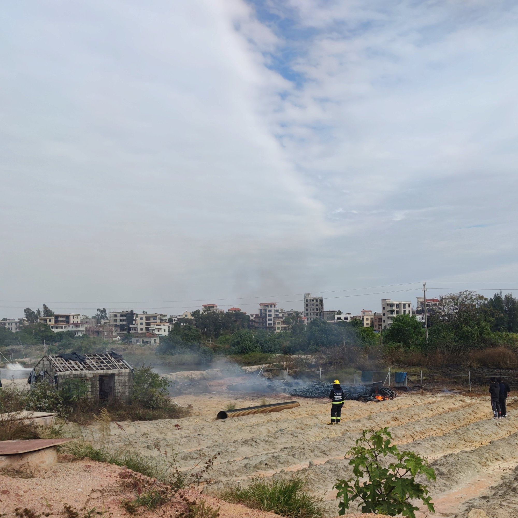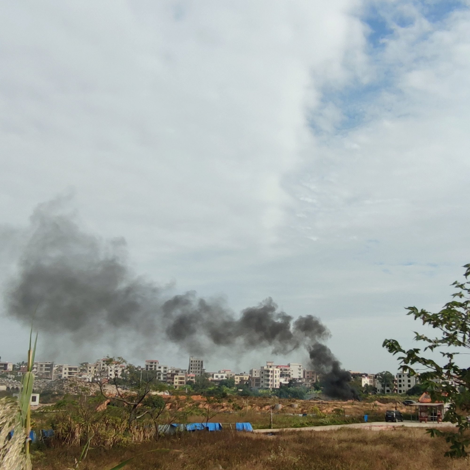 再过了许…许…,我见那烟火续渐微小…也就慢慢离开了现场,但几辆消防车与消防员们还在现场…后续就不清楚了…而我也就走去拿电摩走了…风高物燥,小心烟火…