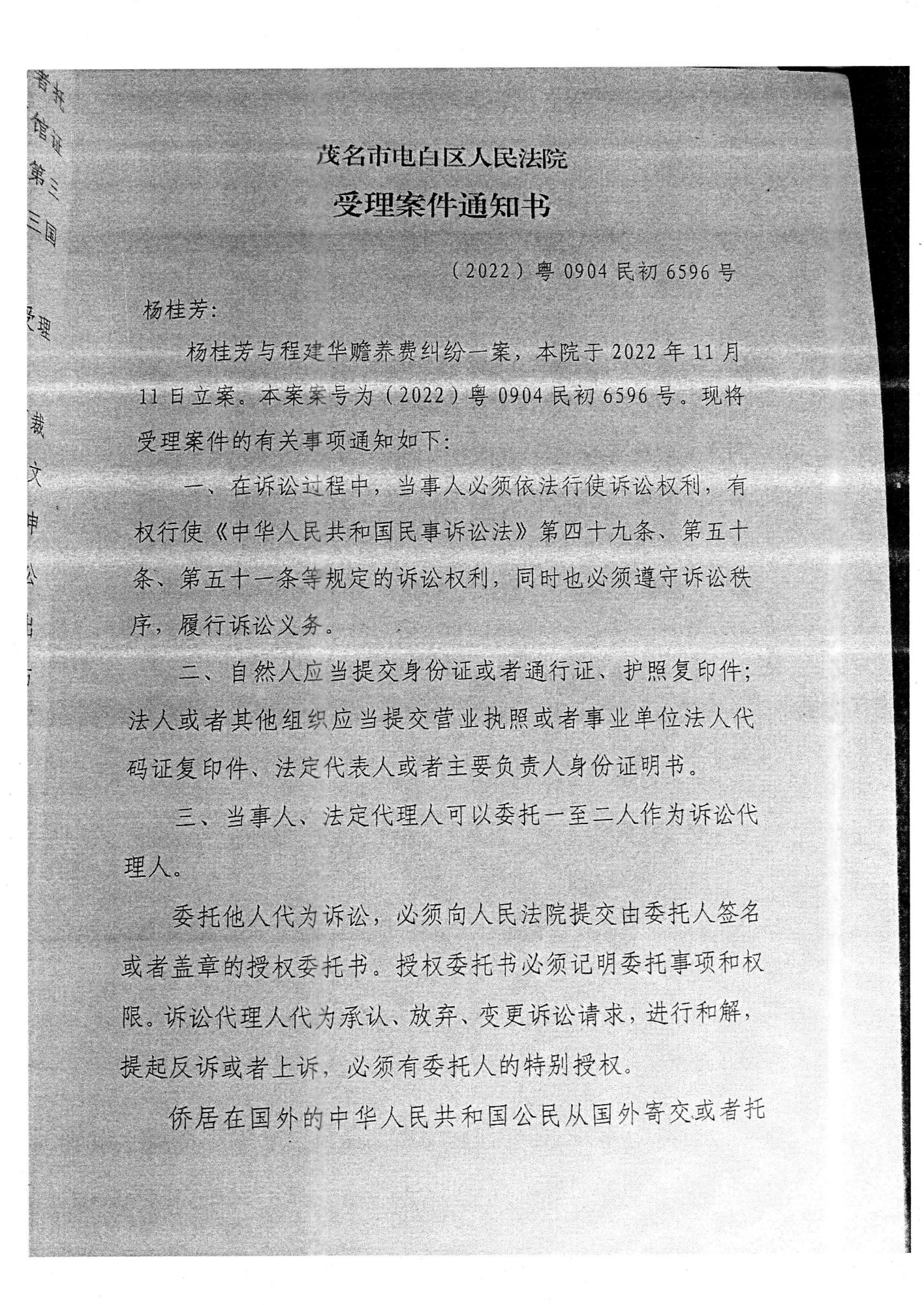 程建华 说: 她因为违法在逃,知道逃不脱制裁,故意转移公众视线,砸我的房子,说成她的,就以为砸自己房子没事,在诬陷办案人员,这招数,多次出现在前两年抢夺我征地青苗补偿款的诉讼中,当时就叫他大老婆抖音污蔑我,故意把青苗补偿款说成是征地款,青苗补偿款和征地款两个概念,青苗补偿的原则是“谁种谁管理谁得”。一直打到茂名中院我才拿回我的补偿款,为此,这某人也用同样手段诬陷过法官,哈哈 点击展开... 你早已不是本村人,不赡养母亲被母亲起诉,还要抢征地款。证据确凿,不容抵赖!