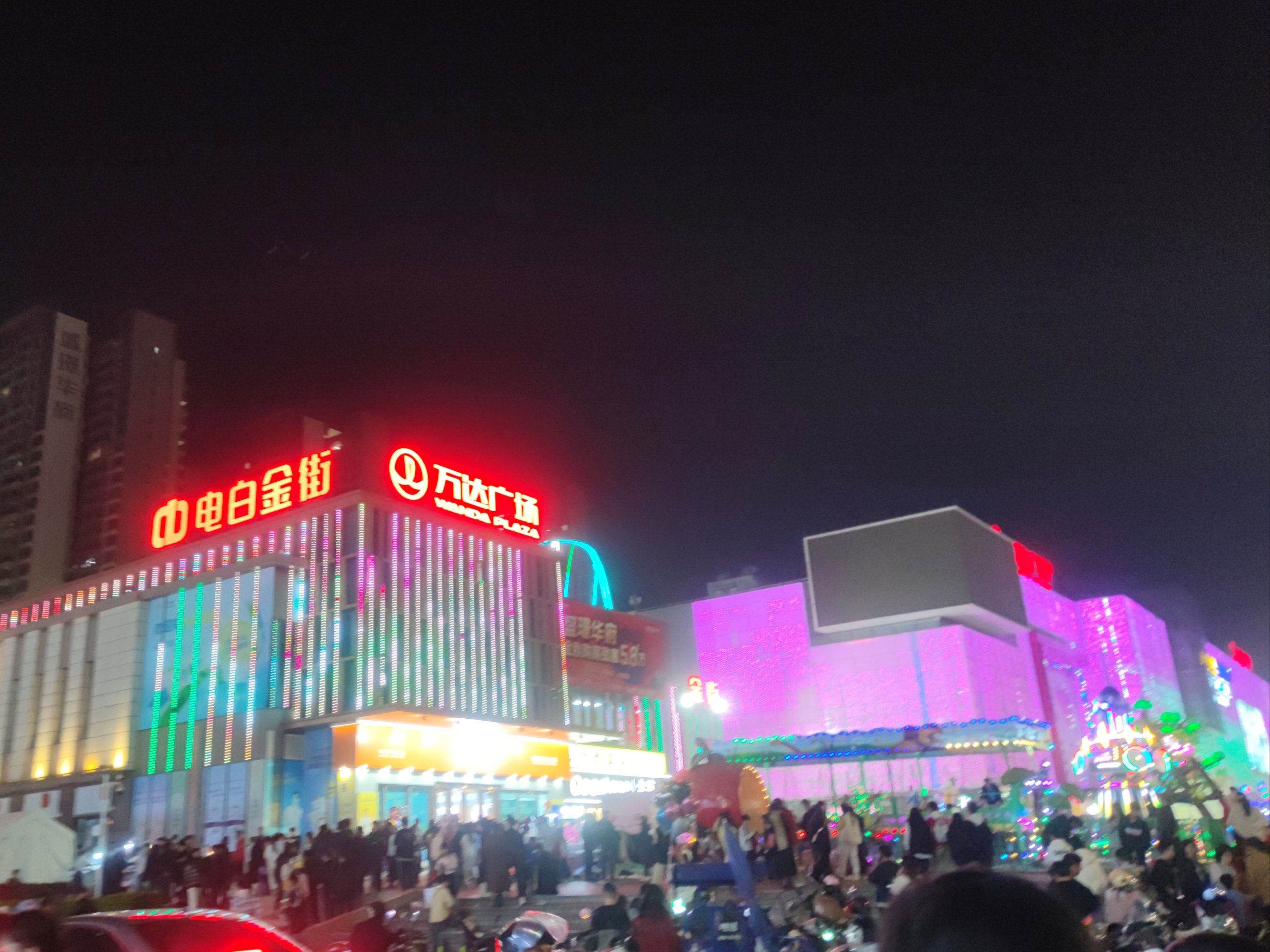 续下昨晚之迎宾路~后顺着向万达的凤凰大道方向走去,为拍1、2号门景,也就走过邮政、传湾新大地外围临街也挺多人,后走到对面加油站往回看,人行班马线人来人往~