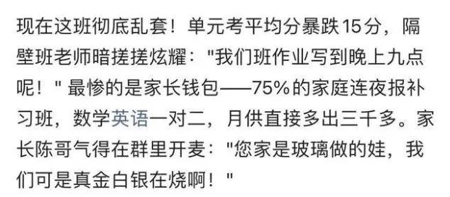 昨天就一帖本来想回复:其实小学在哪里读都一样。农村一些小学的性价比,比两三万一年的学校性价比还高。小孩子品质和成绩,是决定于父母受教育程度和重视教育程度。小学五年级,小孩子受环境影响是不大的,六年级才断崖式受环境影响 翻箱找柜翻出一篇这样东西,想发给大家 后来晚上想想,那人内心真是不简单。太坏!