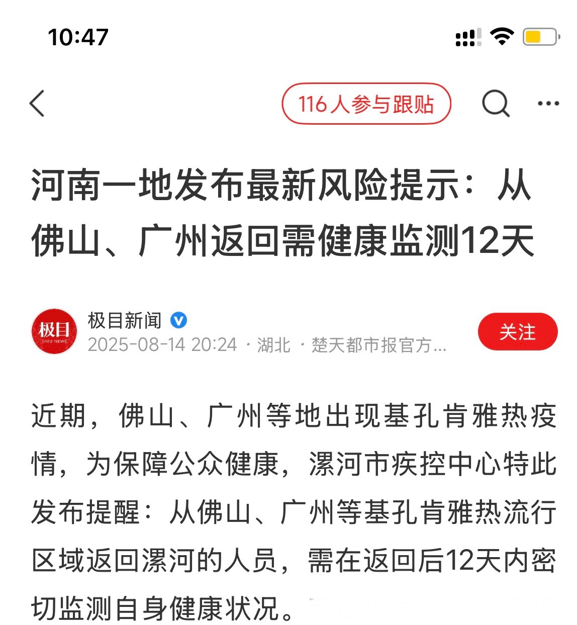 zhx004 荣誉主席 注册 2006-03-28 消息 11,135 反馈评分 576 点数 191 2025-08-14 Windows 10 Firefox 141.0 #59 听说从外面回来的要向村委报备是吗?