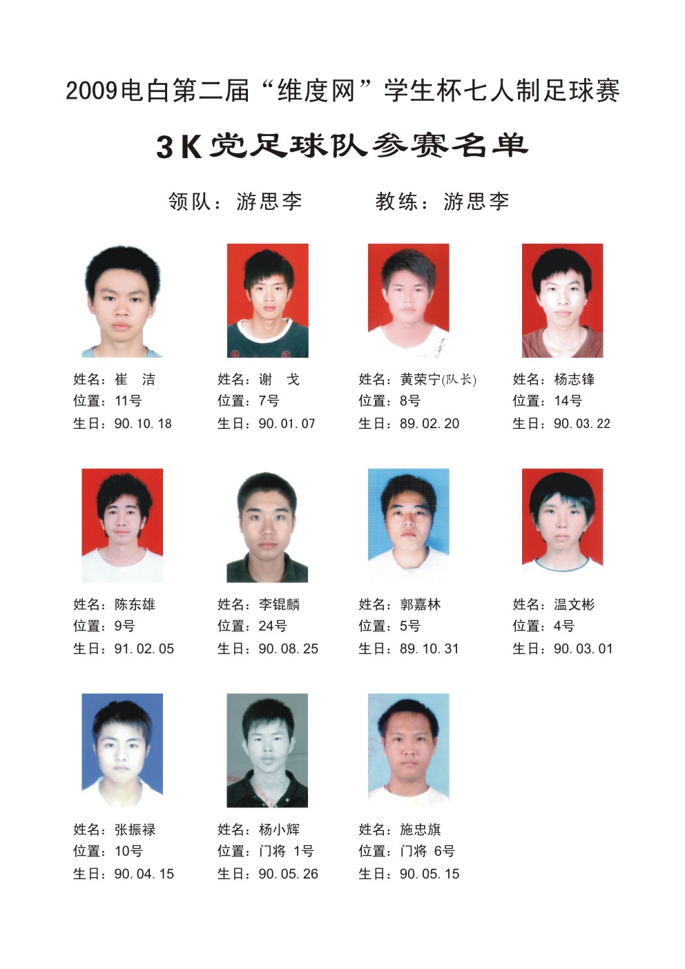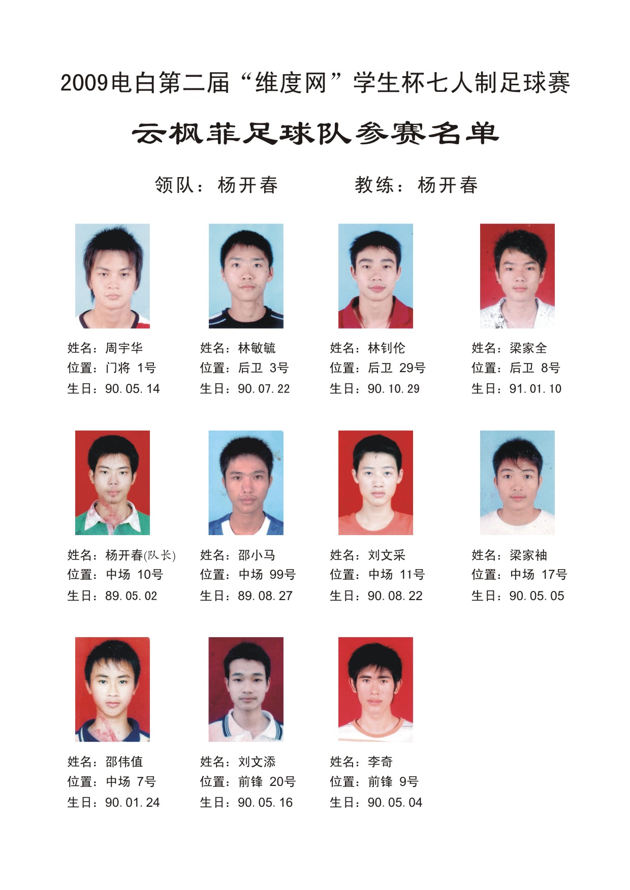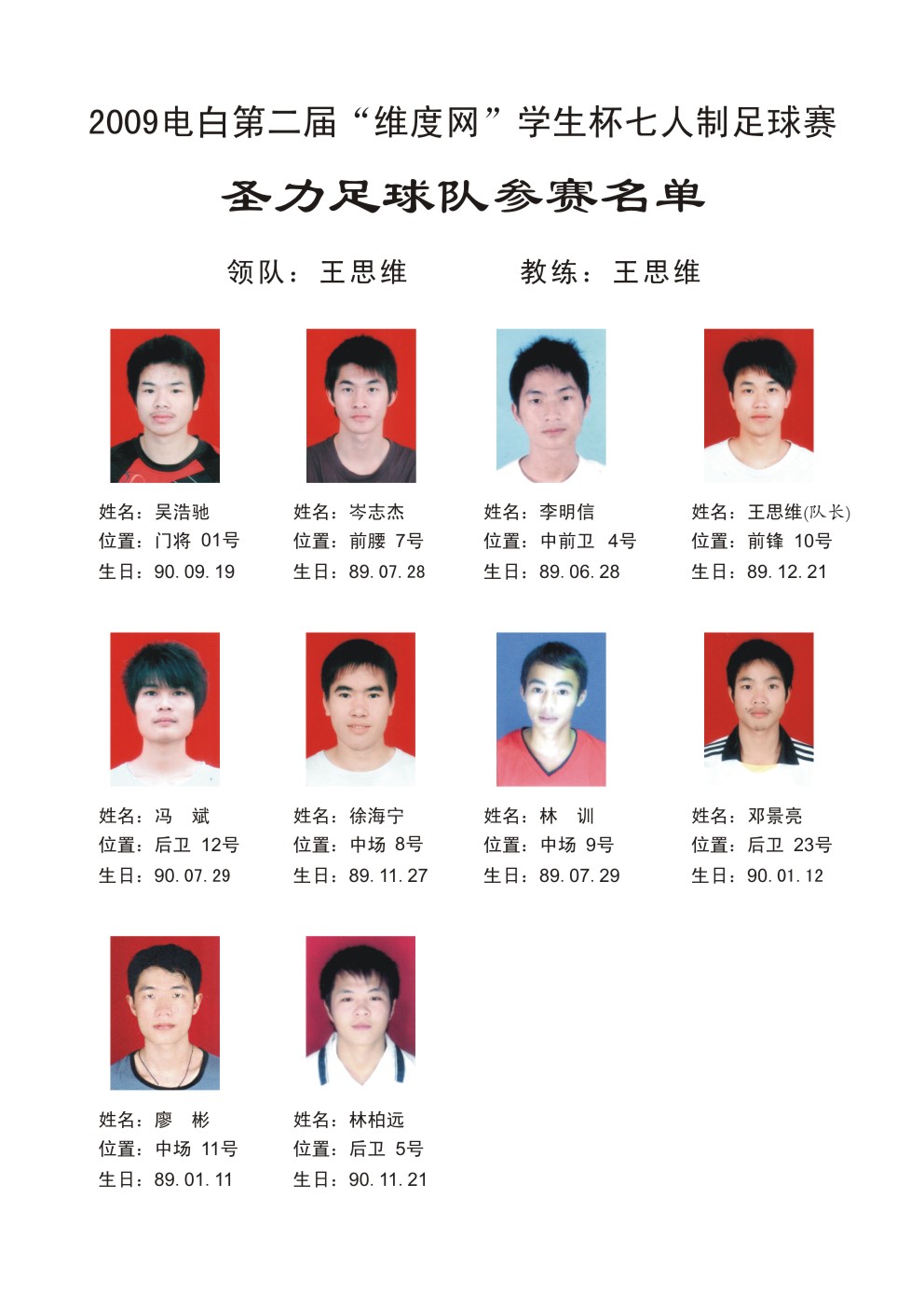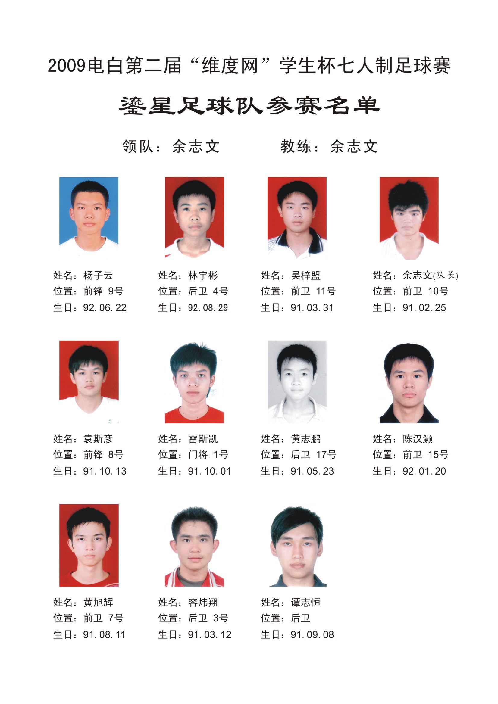 2009电白第二届“维度网”学生杯七人足球赛 参赛球队名单 (1人在浏览)