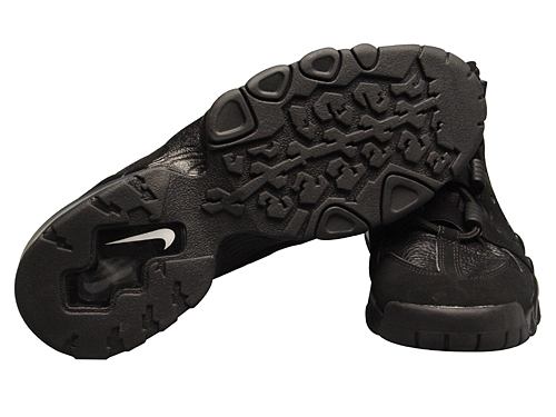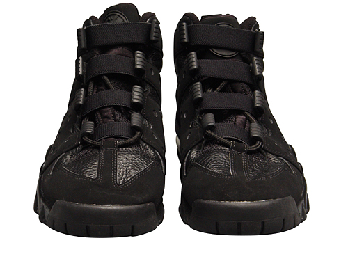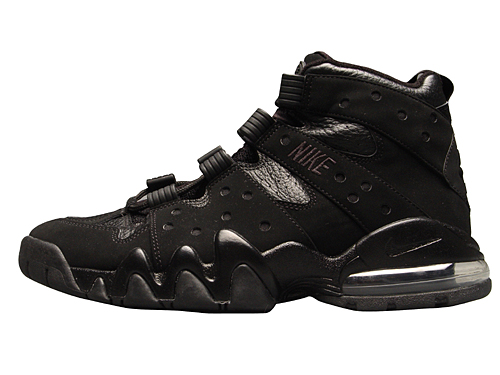 关键技术:全纹皮鞋面,特殊的鞋带系统能在比赛中更好的锁紧双脚。 轻质PHYLON中底。 脚跟大开窗气垫。 特殊的底纹设计,能产生良好的磨擦力。 1994年,CHARLES BARKLEY的专属篮球战靴。 黑/黑