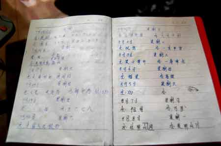 图二:每天,孩子将母亲身上出现的字写在笔记本上。