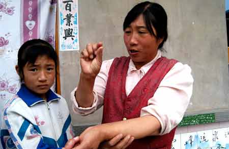 8月16日中午,记者来到榆中县甘草店镇好地岔村,问起身上“长”字的胡玉芳,众多热心的村民争抢着给记者带路。胡玉芳听到有人来便出门热情相迎,当记者提出要看看她手臂上“长”出来的字时,胡玉芳一面伸出胳膊让记者看,一面惋惜地说:“昨晚出来的字今早全部消失了。