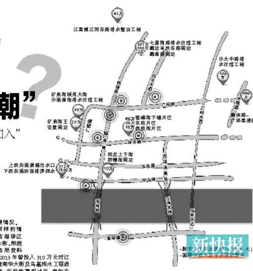 公开的媒体报道和水务局公布的年度财政预算显示,为了治理水浸街,广州市近三年来已经投入超过4亿元资金,其中2012年投入3.79亿元、2013年投入3590万元,而2014年将再投入3219万元。然而记者查看后发现,前晚部分受淹严重的路段却并没有出现在今年的水浸治理计划中。