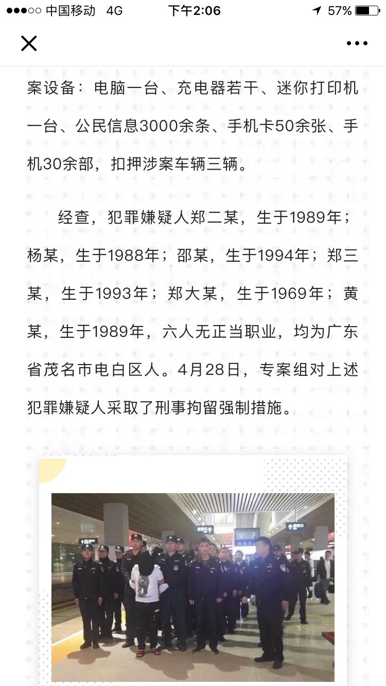 经查,犯罪嫌疑人郑二某,生于1989年;杨某,生于1988年;邵某,生于1994年;郑三某,生于1993年;郑大某,生于1969年;黄某,生于1989年,六人无正当职业,均为广东省茂名市电白区人。4月28日,专案组对上述犯罪嫌疑人采取了刑事拘留强制措施。