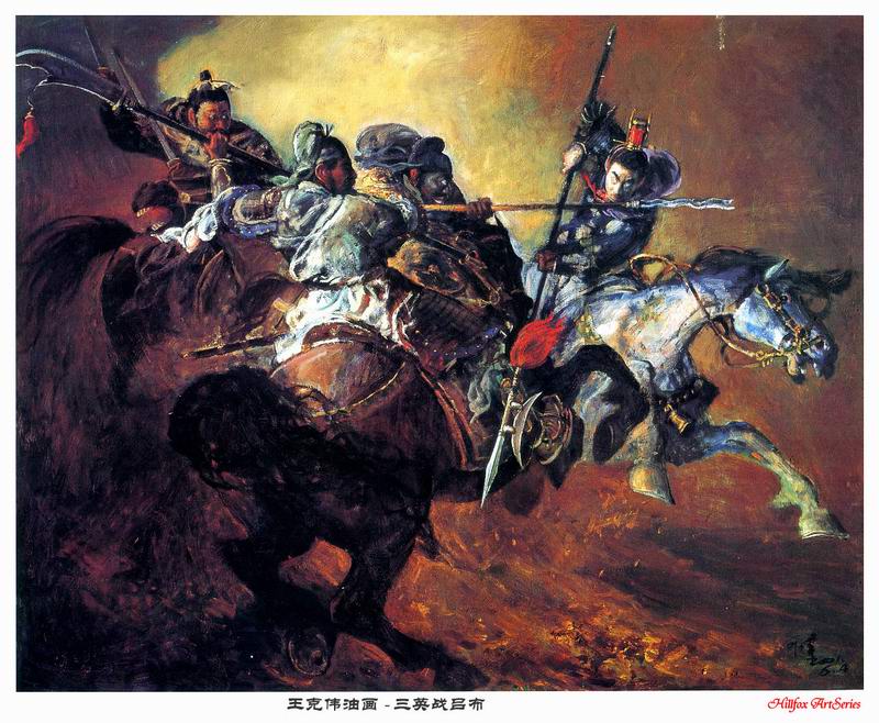 肥哥 荣誉会员 荣誉会员 注册 2004-10-02 消息 1,977 反馈评分 1 点数 61 2004-12-04 #11 《三英战吕布》中,画家似乎犯了点错:吕布的马应该是火红色(赤兔马)。 个人认为:画家把吕布的马换成白色,应该是站在画家而不是史学家的角度着笔的。