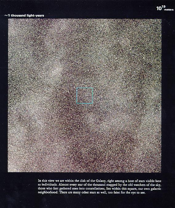 现在我们把视野缩小10倍,宇宙看起来还是空空如也,“星”光点点。可是,那些点点斑斑的真的是星么?