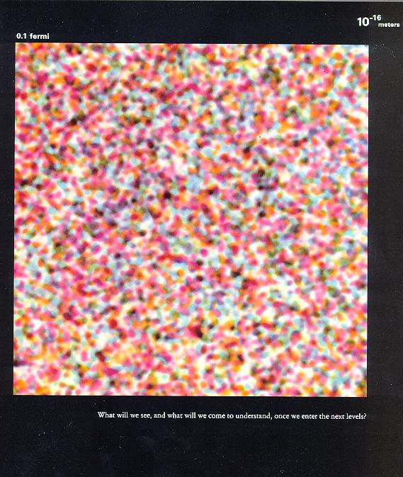 质子(也可能是中子)的细部,乱七八糟一大片。未知的结构,未知的领域,那里属于上帝。