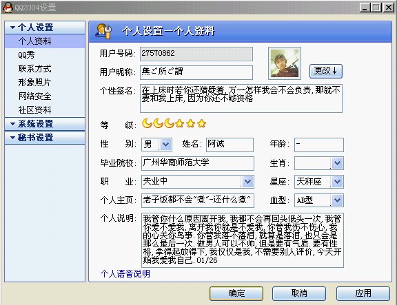 freeworking 命运追逐 荣誉会员 注册 2004-11-09 消息 520 反馈评分 0 点数 1 年龄 42 2005-02-02 #49 呵呵 看你们高兴得 发一个在我QQ上最高级的 附件 aa.bmp aa.bmp 150.7 KB · 查看: 439