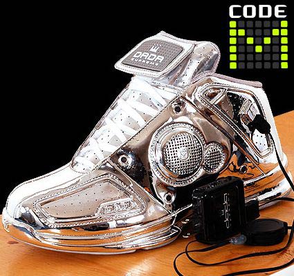 近日由Dada鞋业推出一款名为代号M的运动鞋,可别小看这款银光闪闪的鞋子,它可内有乾坤,内置了MP3随身听。可将音乐传送至附赠的无线耳机;当使用者在运动场上进行比赛,或是不方便使用耳机时,音乐可改由鞋子内建的扬声器播出。这套MP3随身听是由USB充电,附赠运动型内置遥控。