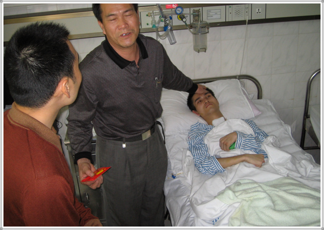 2007-02-14上午,与深圳福田区总工会刘汉新副主席等领导去深圳红会医院看望被汽车撞伤的同事,现在已变成植物人,深圳福田区总工会送上1000元慰问金,市总工会送来5000元慰问金。交通事故责任车主负责六成,他个人承担四成。