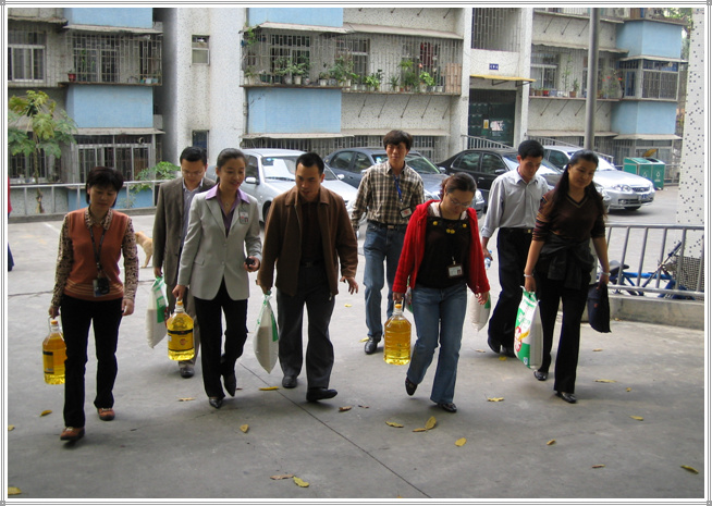 2007-02-08上午参加单位组织的“献爱心送温暖”活动,慰问香蜜湖街道社区贫困残疾家庭活动,福田区总工会刘汉新副主席、香蜜湖街道总工会副主席尹智海等参加慰问活动,香蜜湖店共捐赠价值8000元人民币的大米、油、年货等家庭用品给了香蜜湖社区的60户贫困家庭。