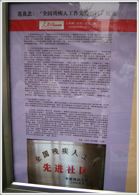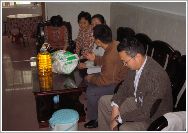 2007-02-14上午,单位领导与深圳福田区总工会刘汉新副主席等领导,带来油米去深圳竹子林社区慰问残疾贫困家庭。
