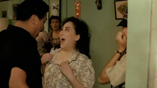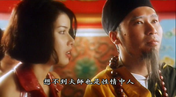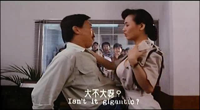 以胸前伟大而走红的艳星叶子楣,在东南亚享有“波霸”之美誉。她在《师兄撞鬼》中饰演的女上司,中了姣婆咒后,大展傲人身材。