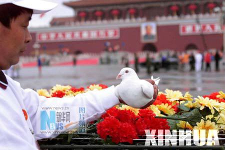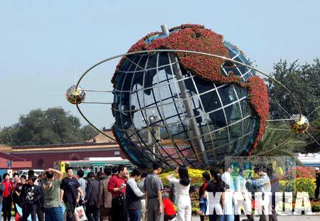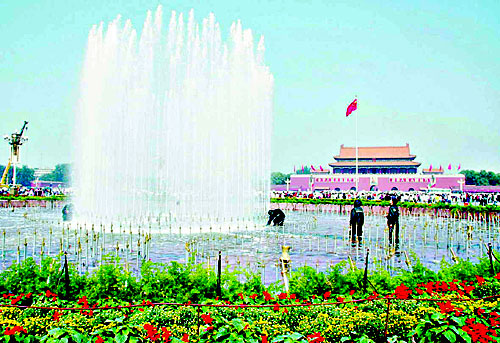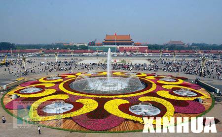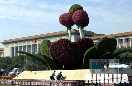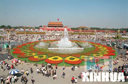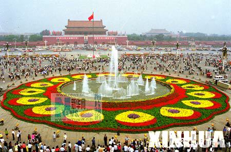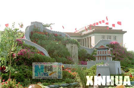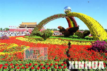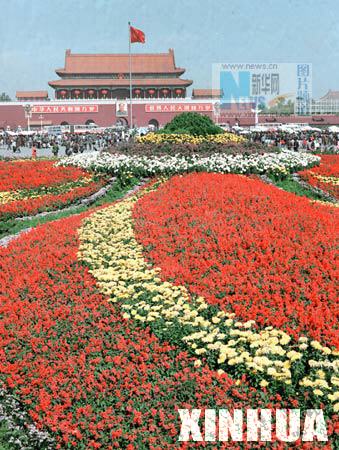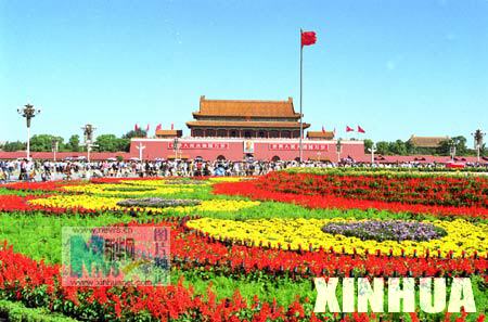 首都北京的天安门广场用数十万株花草进行一番装点。