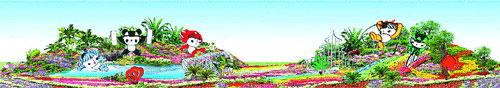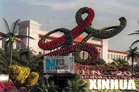 装饰了大约10万盆鲜花和13个花坛,洋溢着一片喜庆、热烈、欢乐、祥和的气氛。