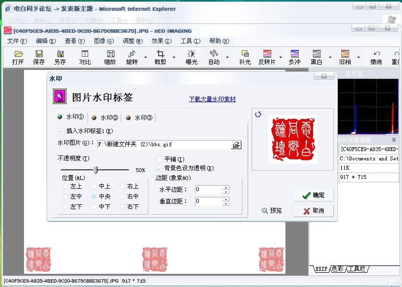 木糖醇 讲科学.破迷信.除陋习... 荣誉会员 注册 2005-07-25 消息 5,900 反馈评分 1 点数 61 年龄 37 2006-11-25 #3 比PS加水印简单吧.... 而且又是免费的.