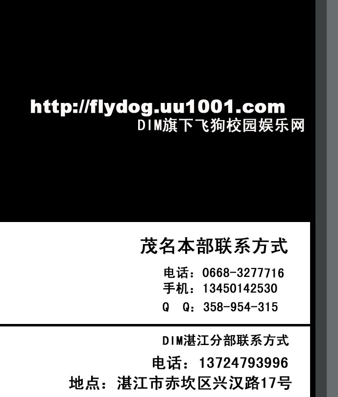 D DIM 幼儿园 注册 2006-12-14 消息 20 反馈评分 0 点数 0 2007-01-29 #1 DIM,成立于2006年8月。一个品牌文化传播机构的打造与开始!创新的理念和超前的策划思想成就了今天在茂名娱乐界的稳固根基!新的一年,DIM更完善的策划推广和专业的商演团队将会给你带给更大的宣传收益!DIM欢迎广大商家来电合作!让我们的策划和节目给你的推广带上飞翔的翅膀! 附件 4.jpg 172.1 KB · 查看: 502 5.jpg 169.5 KB · 查看: 449 6.jpg 95.6 KB · 查看: 477