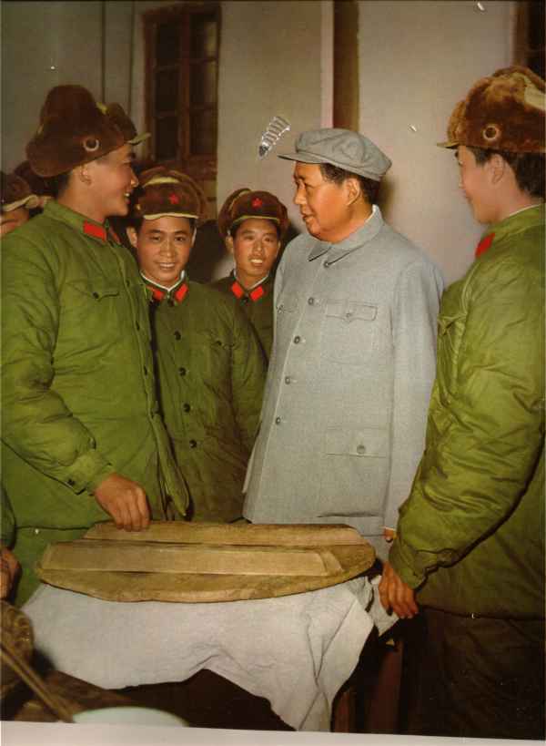 毛主席和人民解放军某部炊事班战士谈话。(一九五八年)